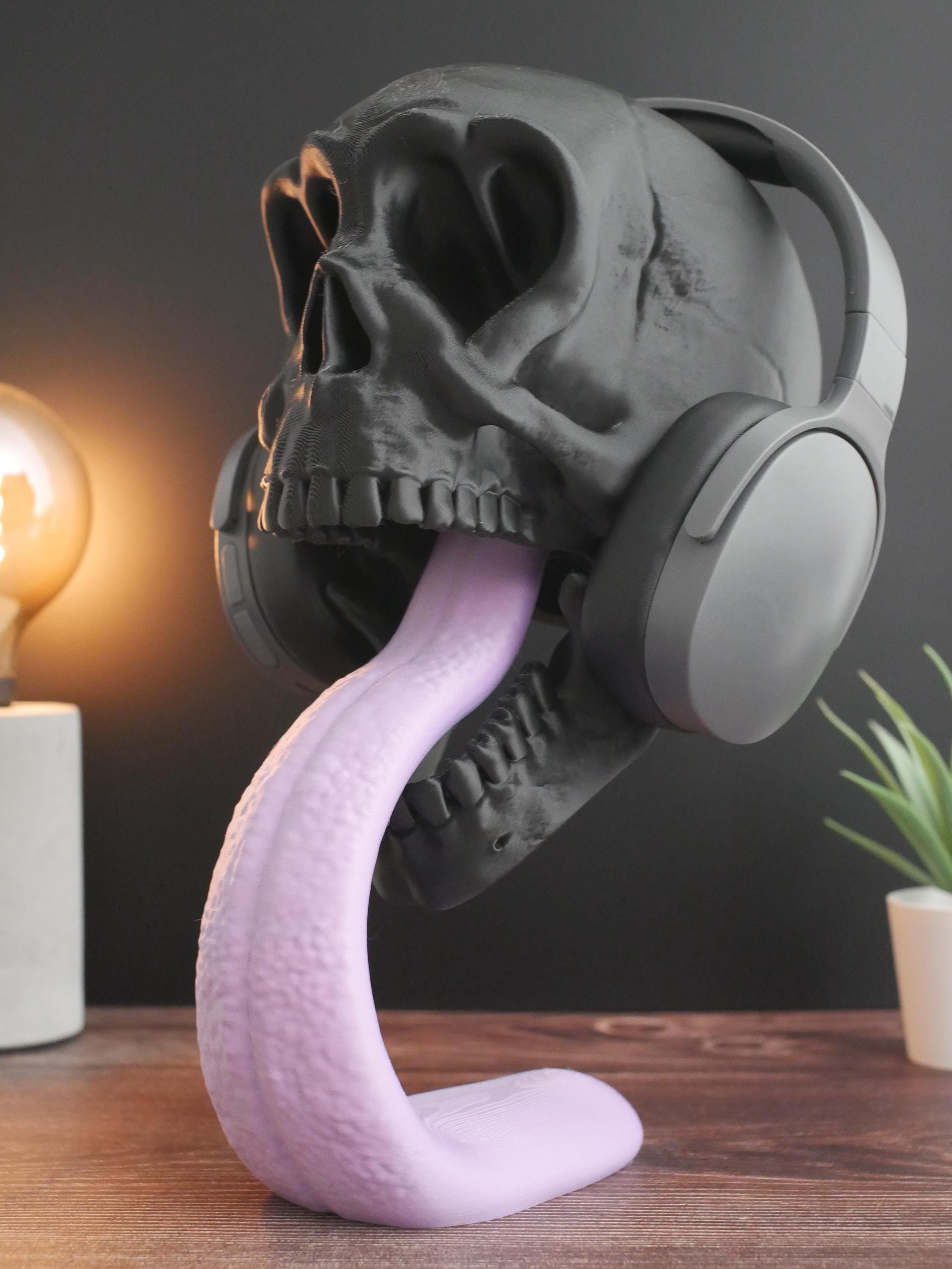 Maximize the visual impact of your workspace with our Skull Headphone Stand. Perfect for gamers, musicians, streamers, and content creators seeking a unique and functional headset stand. This skull-shaped headphone stand not only organizes your devices but also enhances the aesthetic of your gaming or studio area.