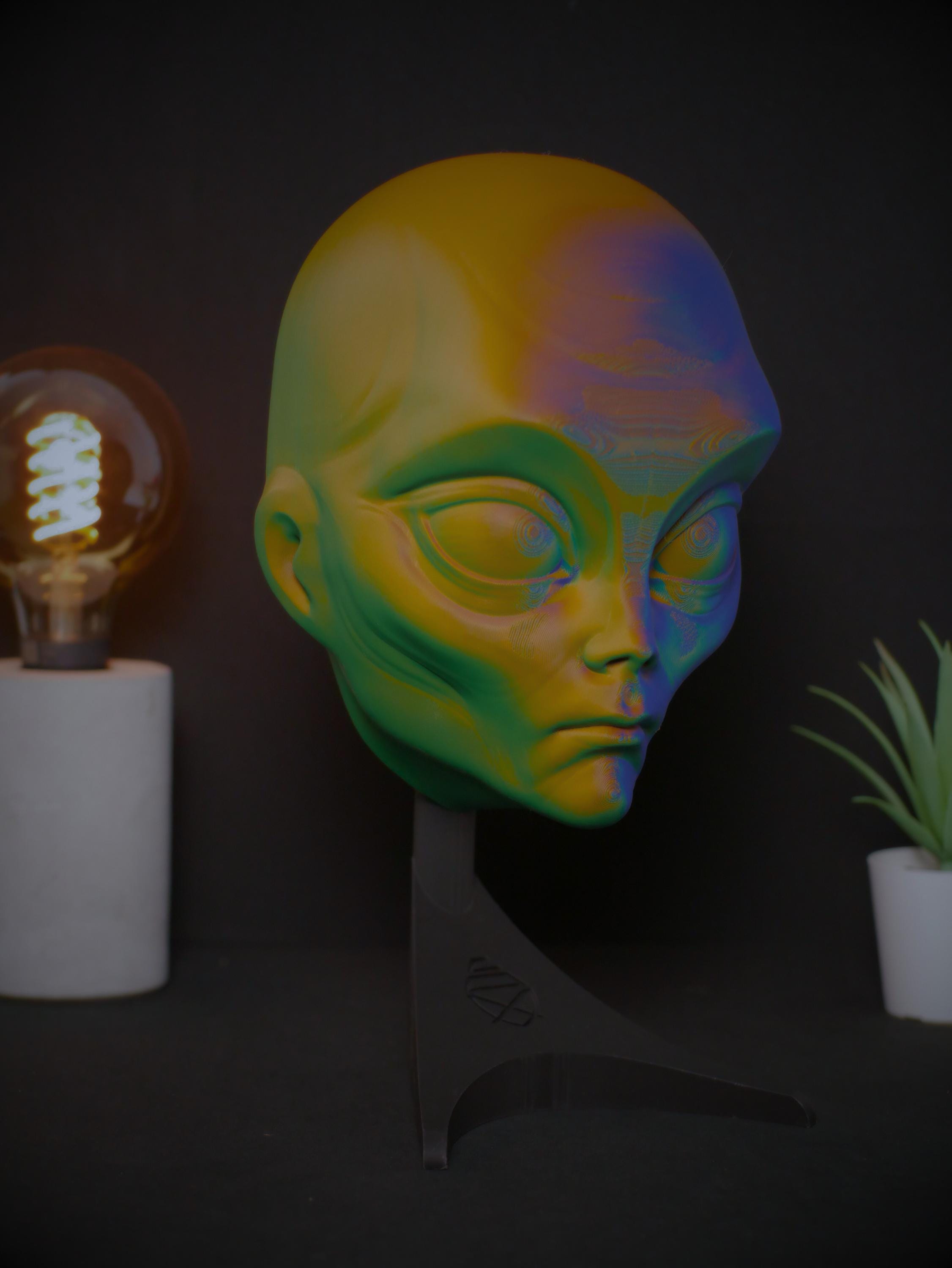 [ A Statement Piece for Any Room ] Whether you're decking out your gaming setup, adding character to your home office, or looking for that perfect piece of wall art for your living room, this alien sculpture fits right in. Its sleek, modern design captures the classic "Grey Alien" form with a contemporary artistic twist. The detail in the eyes, facial structure, and elongated head is captured beautifully in the 3D printing process.