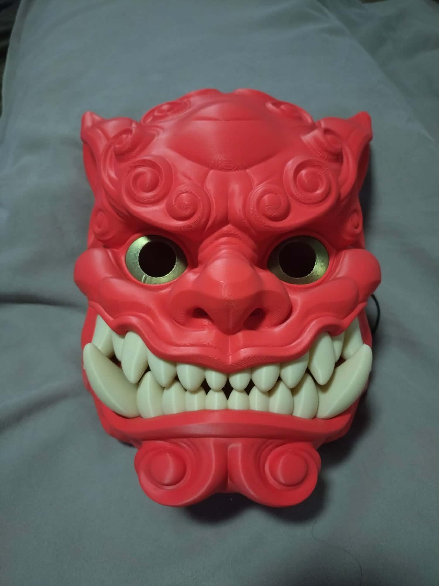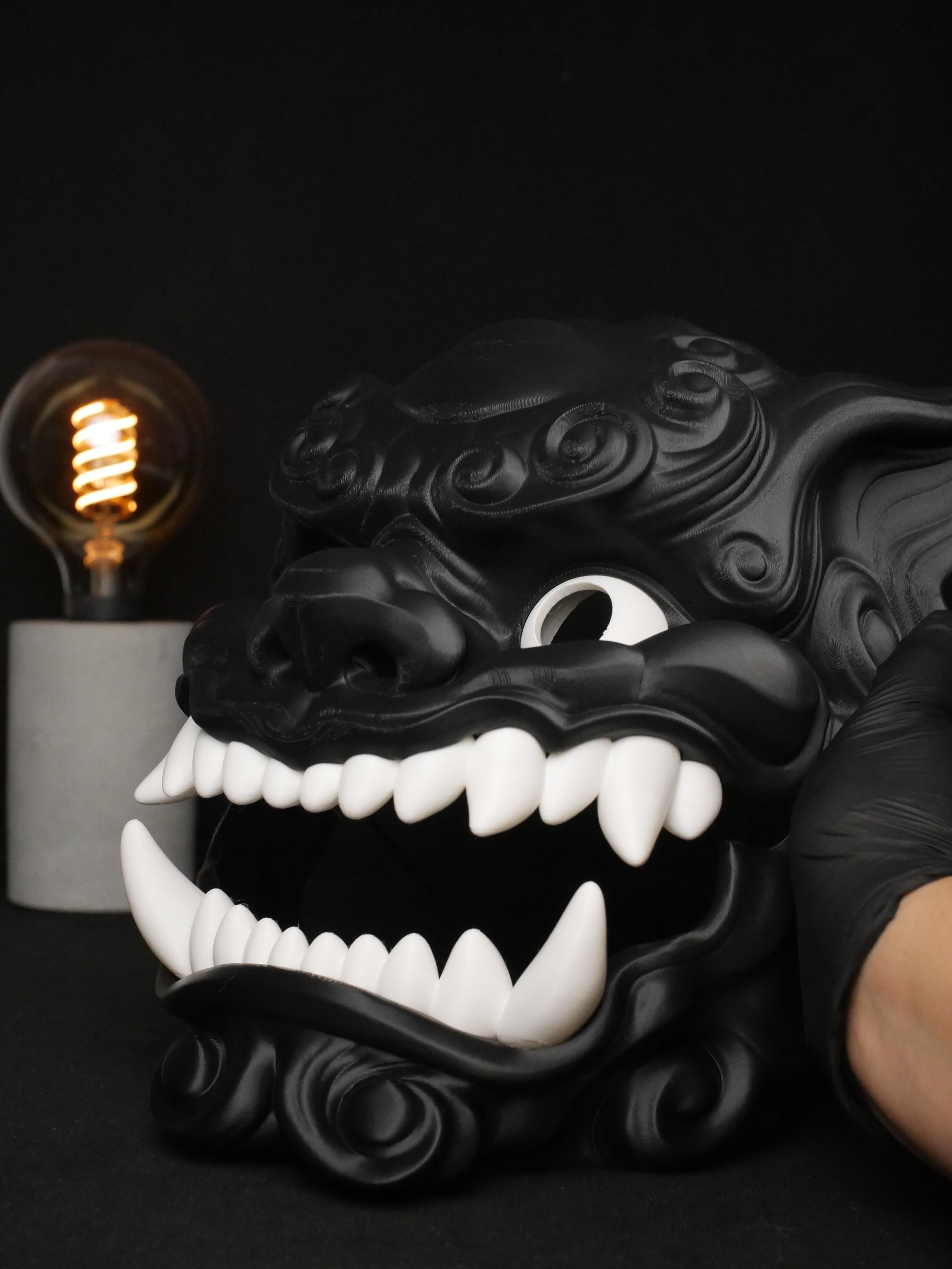 Inspired by the powerful Japanese Guardian Lions (Shisa) and the fierce aesthetic of Oni demons, this mask is the ultimate centerpiece for conventions, Halloween, or your private collection.