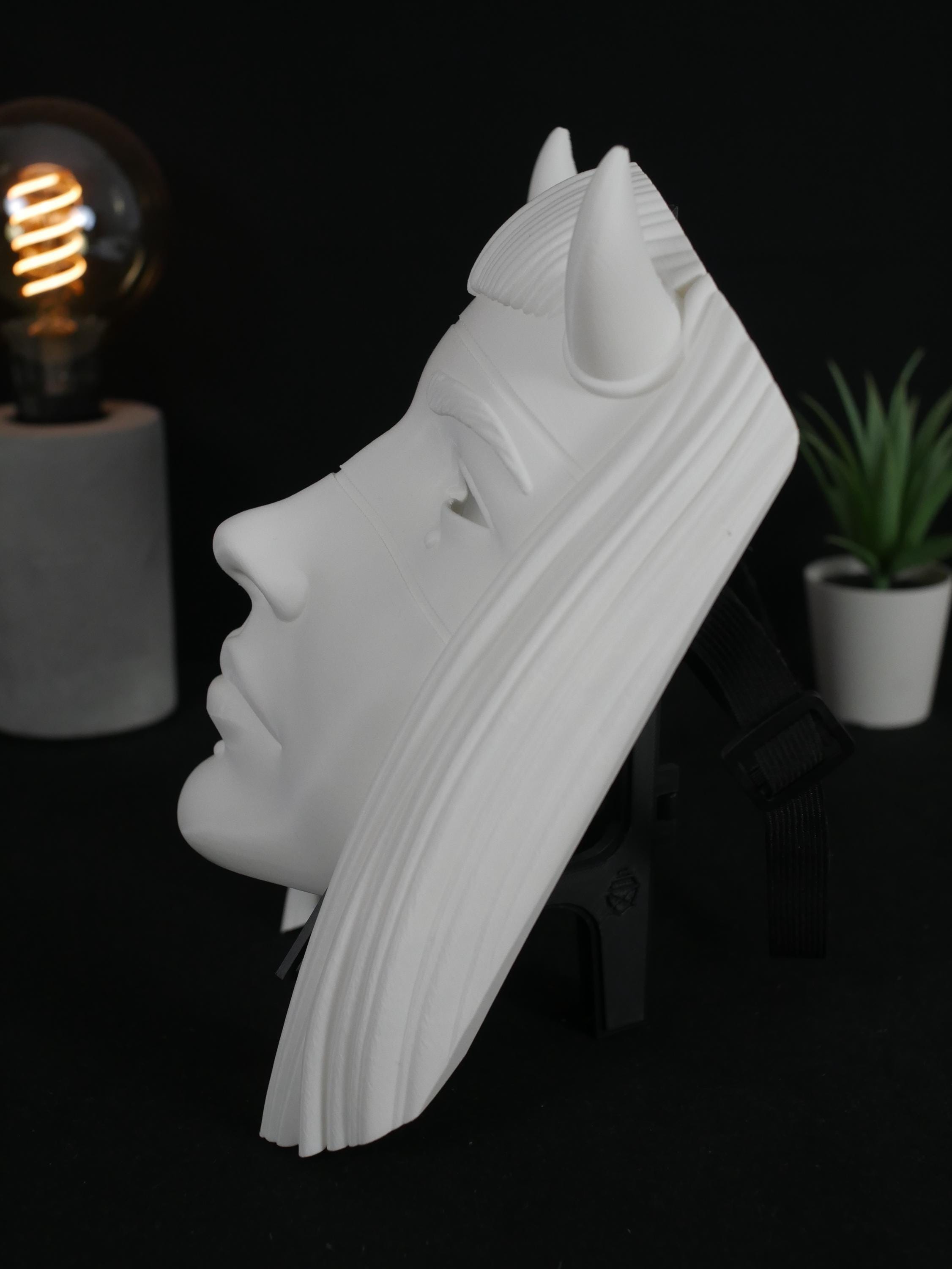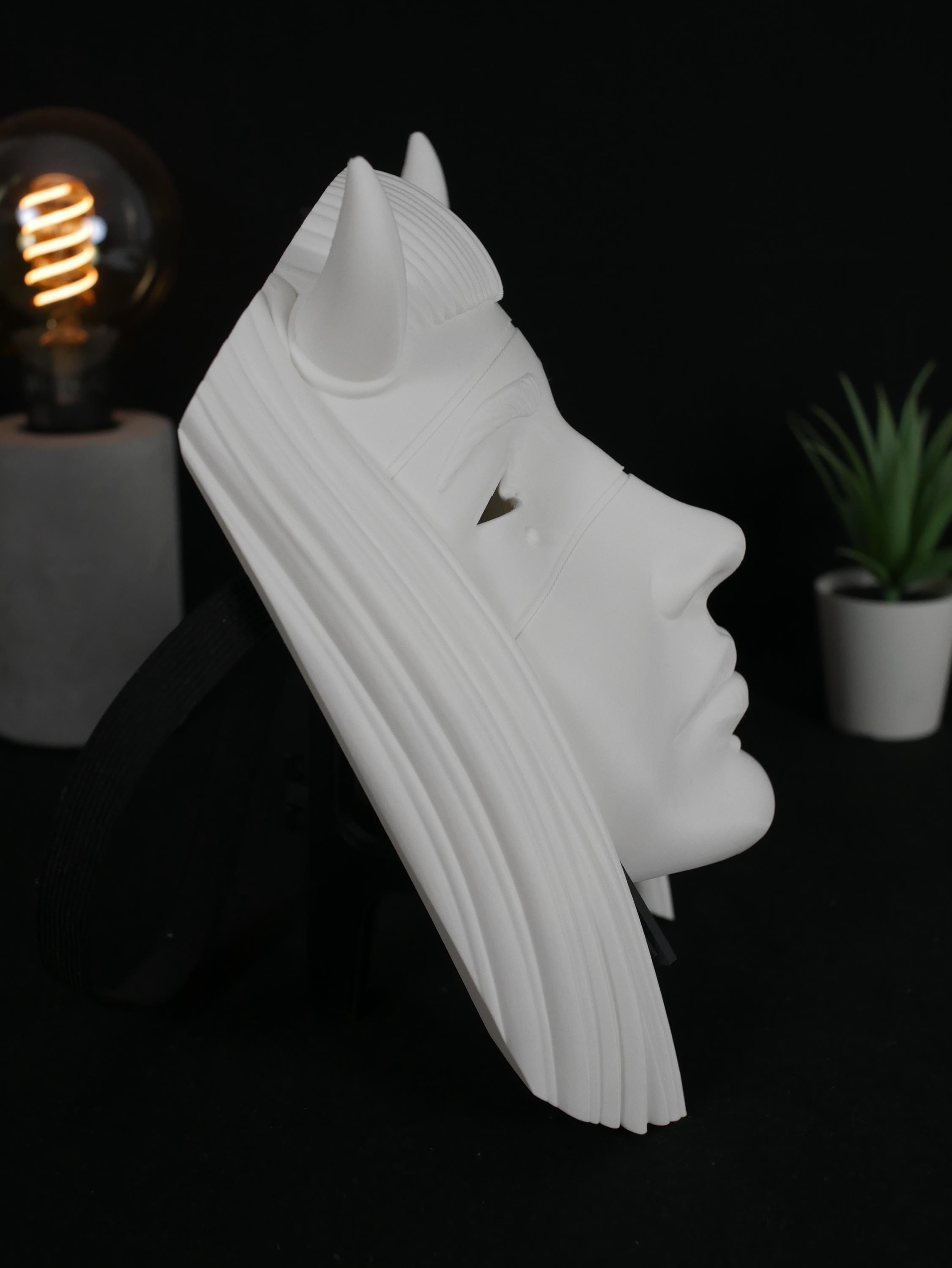 Keywords: Oni Mask, Japanese Demon, Hannya, 3D Printed Mask, Techwear Accessory, Cyberpunk Helmet, Cosplay Prop, Custom Color Mask, Halloween Mask, Rave Gear, Horned Mask, Anime Gift, Wearable Art.