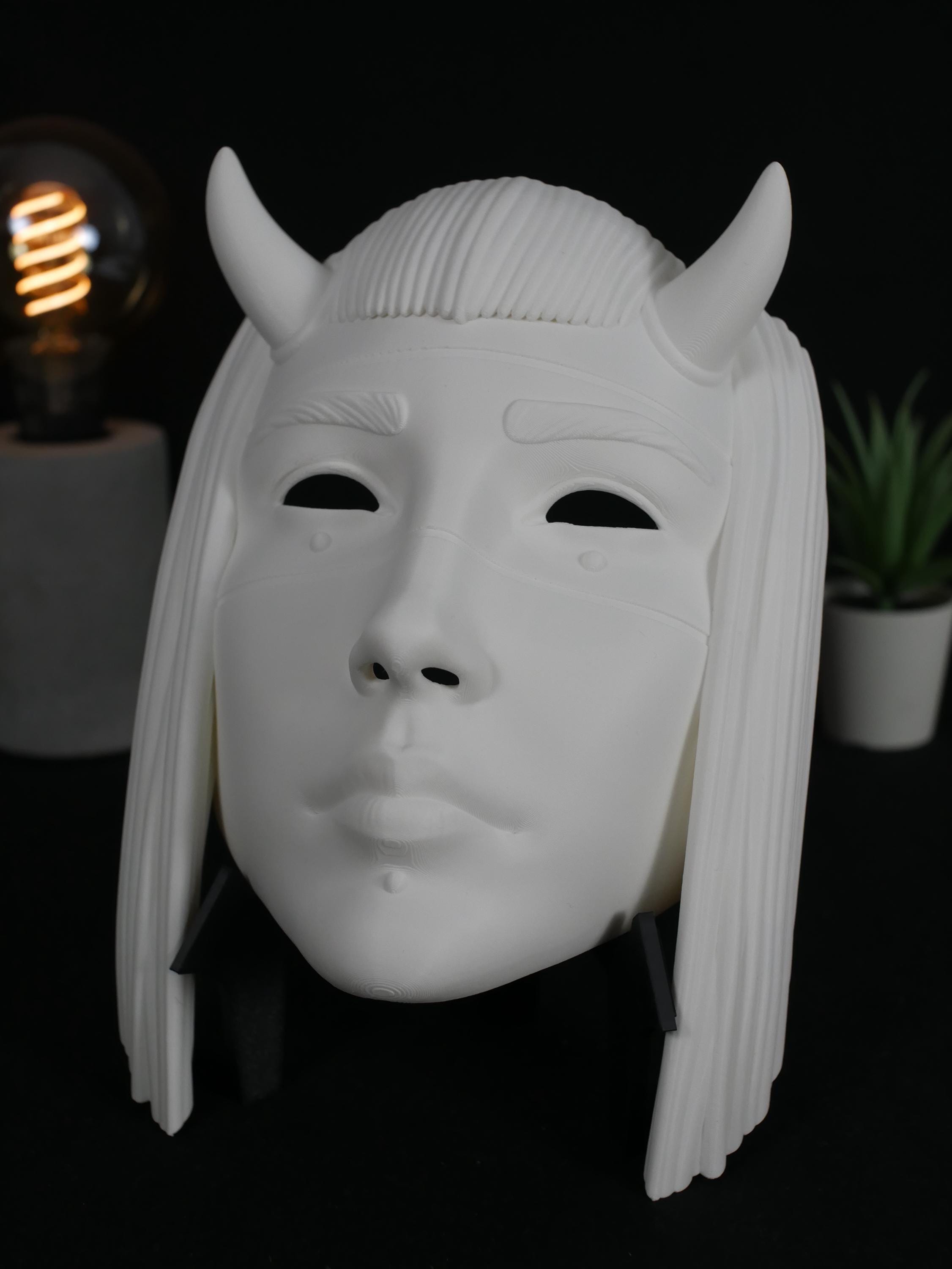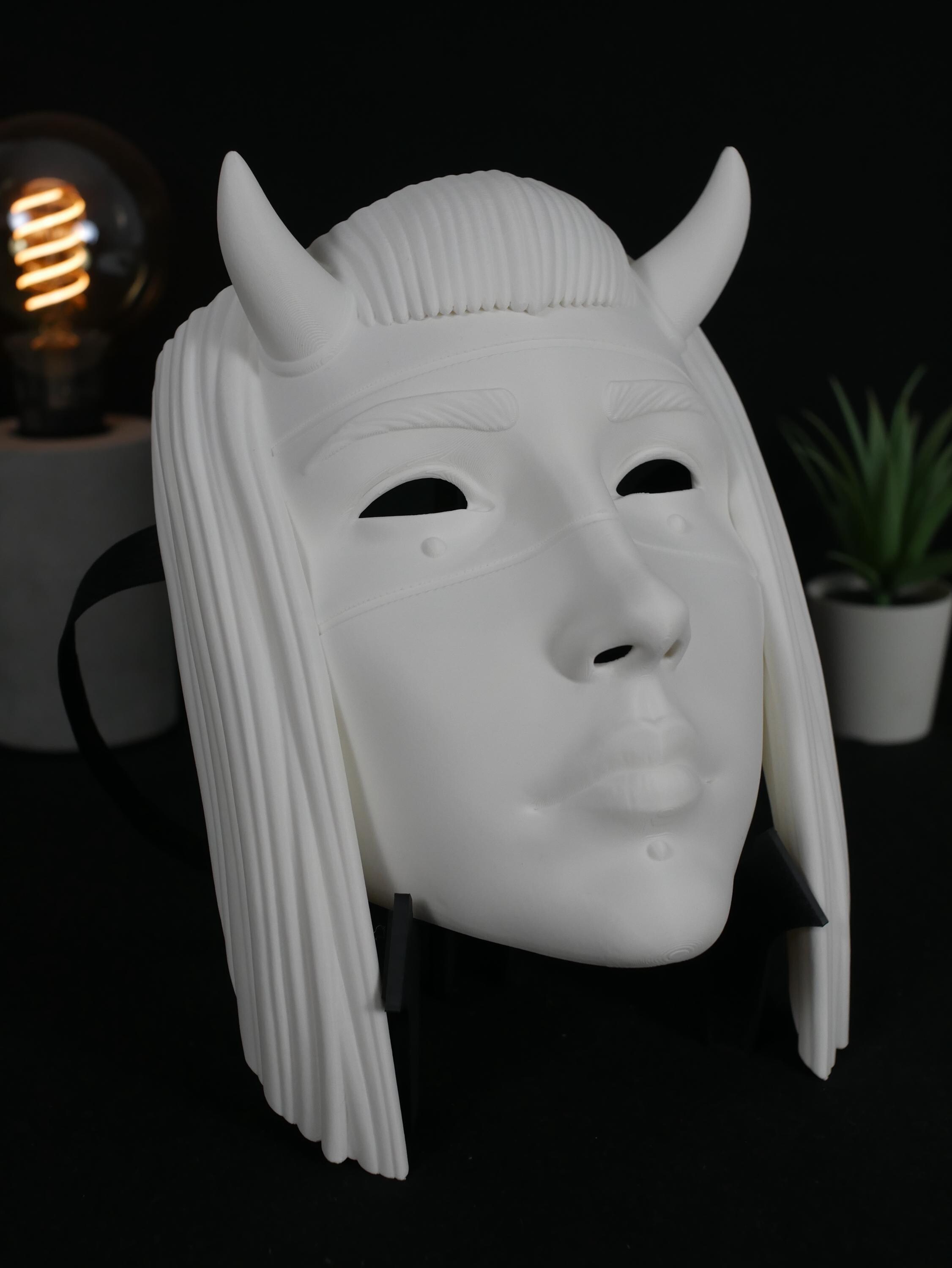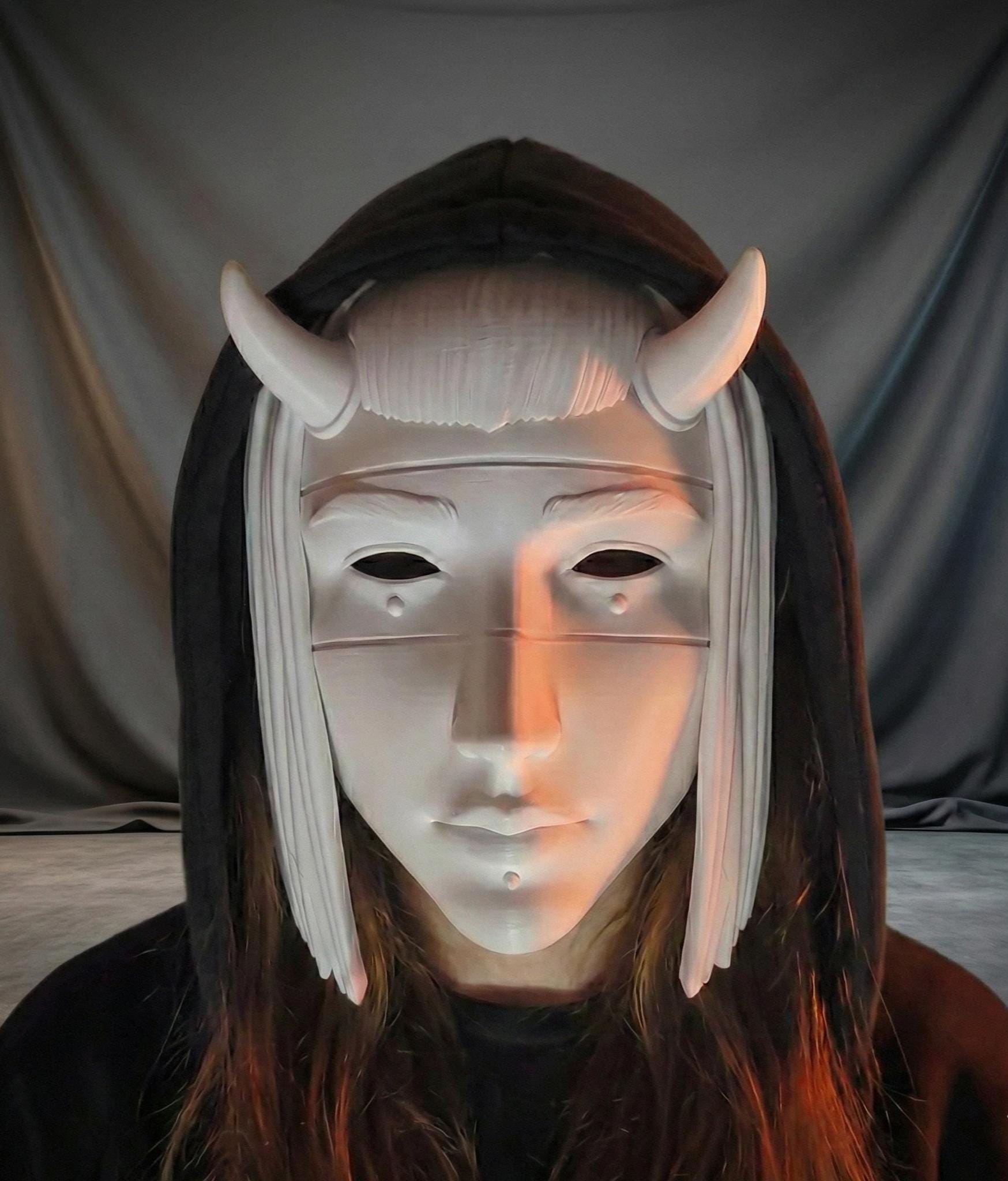 Drawing inspiration from traditional Japanese Hannya and Oni folklore mixed with a sleek, minimalist Cyberpunk aesthetic, this mask is not just a prop—it’s a piece of wearable art.