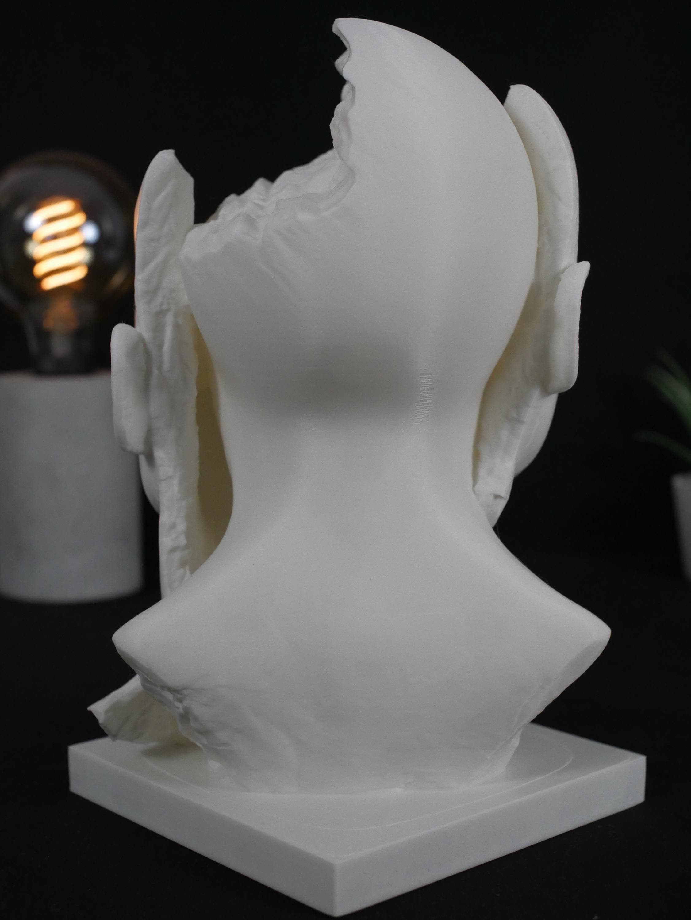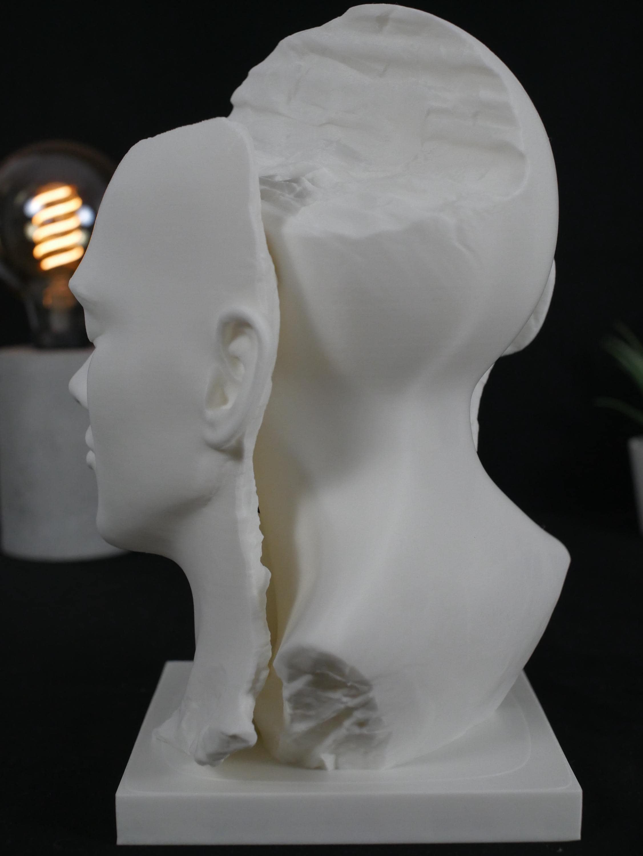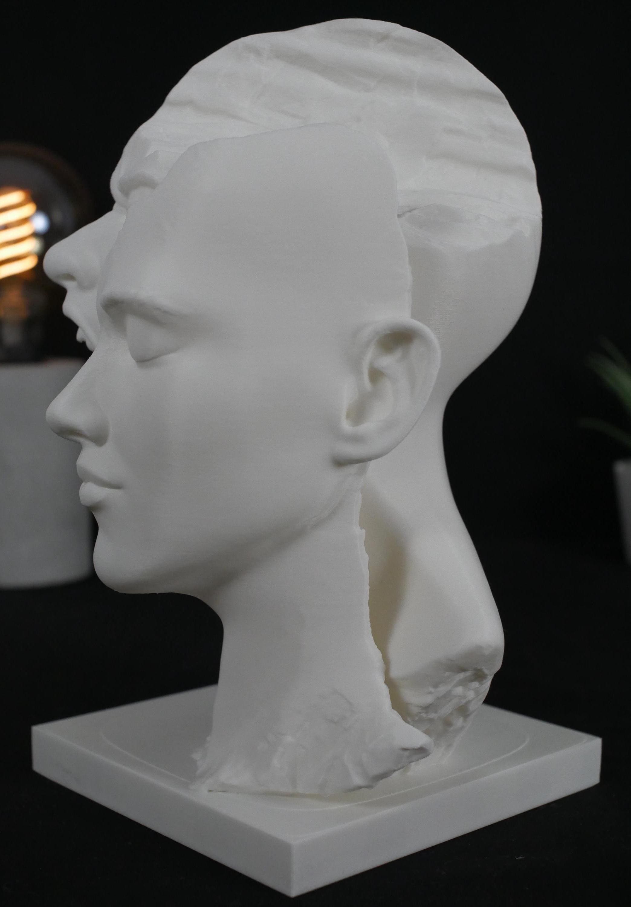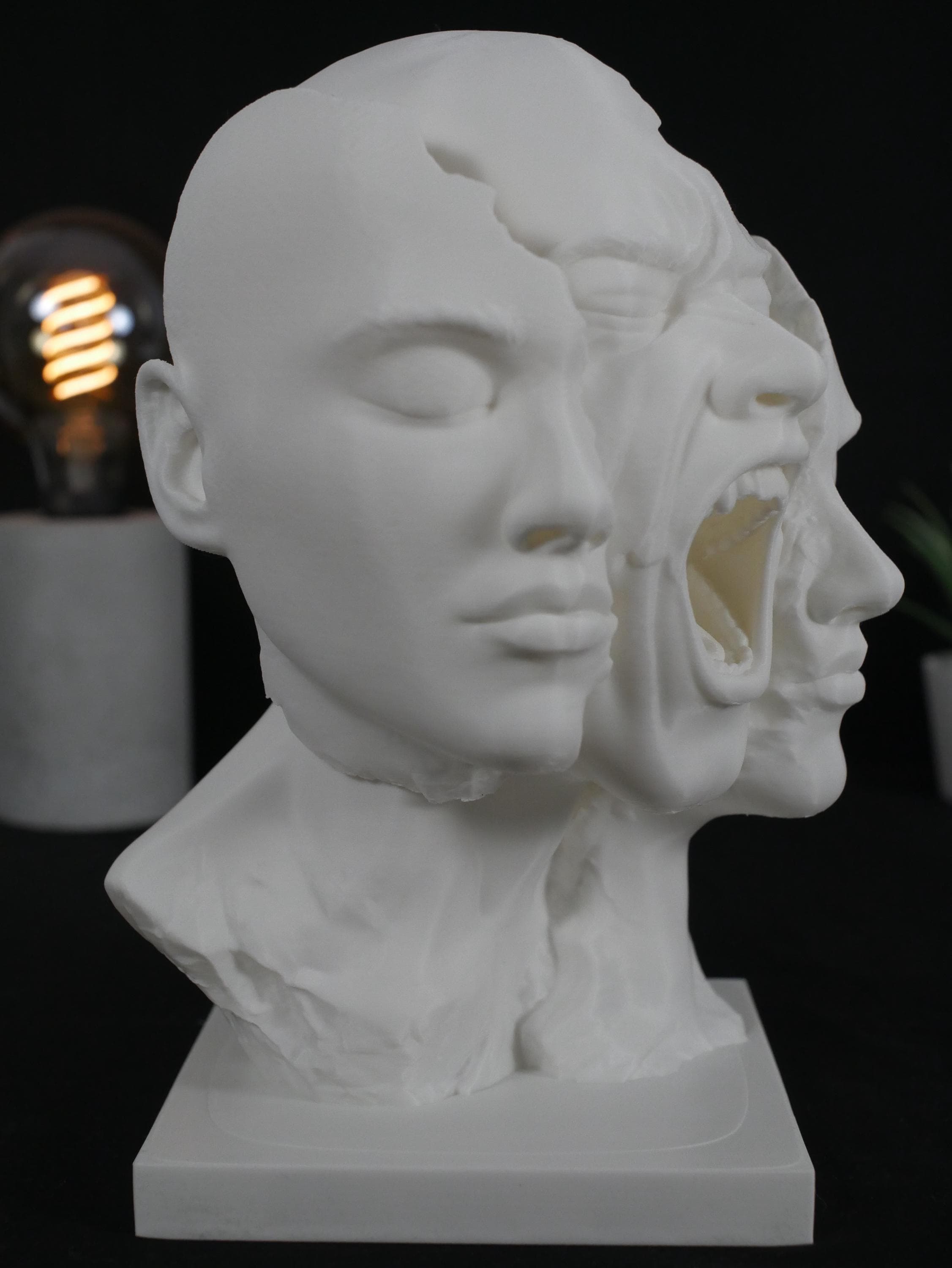 Add a striking centerpiece to your space with this surreal "Split Face" sculpture. Capturing raw emotion and abstract beauty, this piece is perfect for lovers of dark academia, psychological art, and modern eclectic decor. Whether displayed on a bookshelf, desk, or mantle, it is guaranteed to be an unforgettable conversation starter.