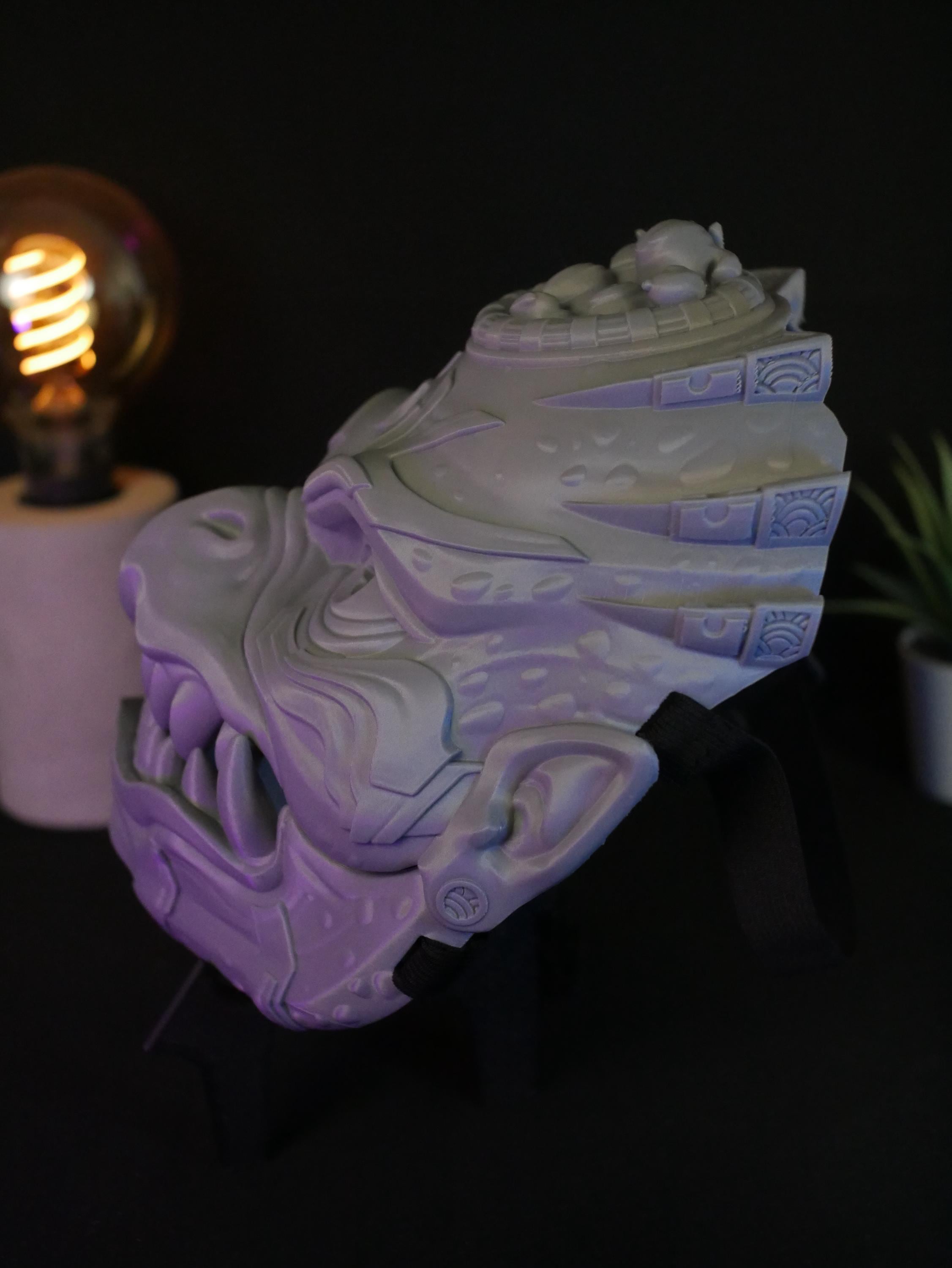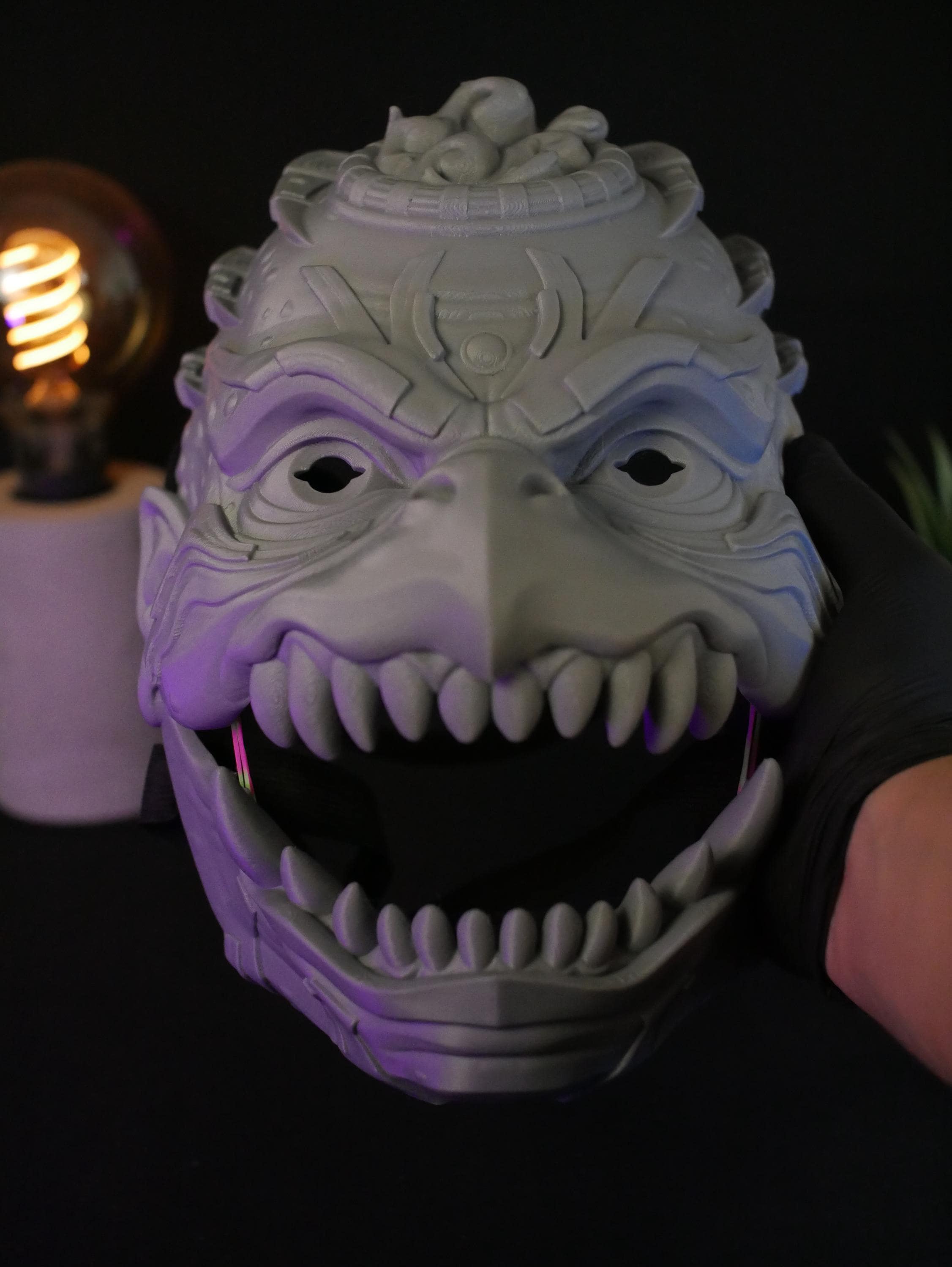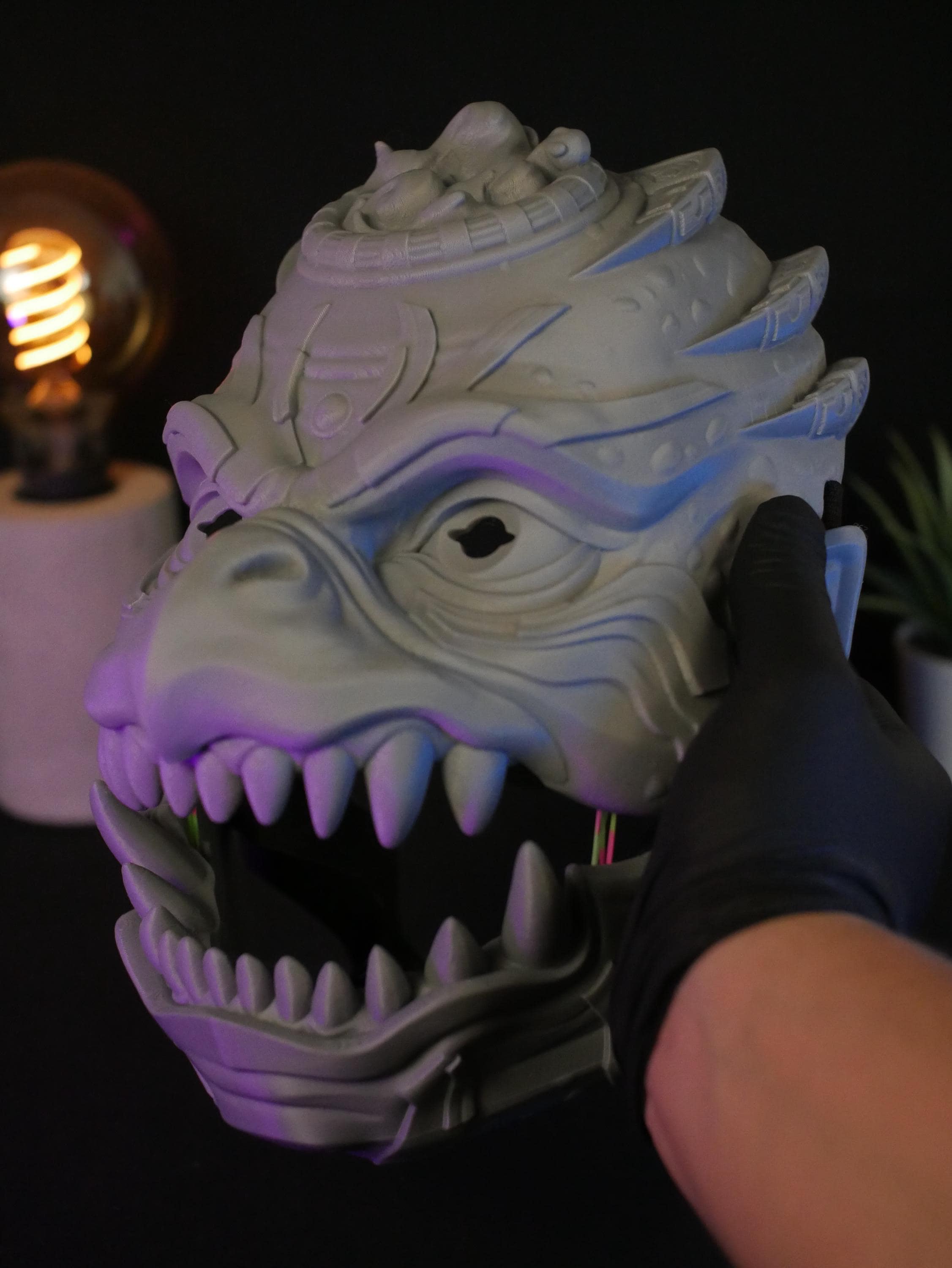 To get the absolute best experience and ensure the articulated jaw operates effortlessly and with maximum precision, we highly recommend adding custom foam padding to the inside of the mask. A snug, tailored fit against your face will give you maximum leverage, making opening and closing the mask's mouth feel completely natural, smooth, and strain-free.