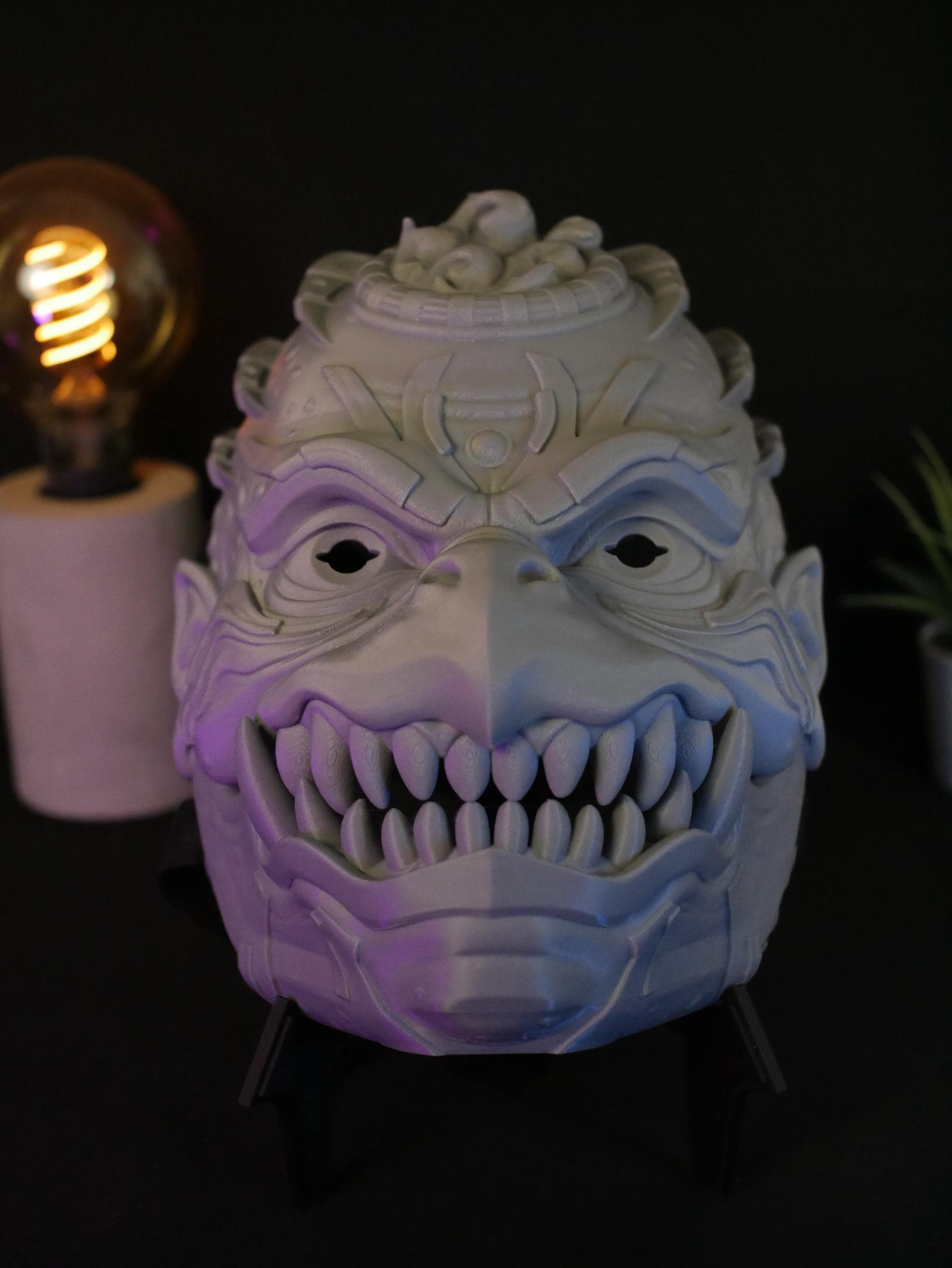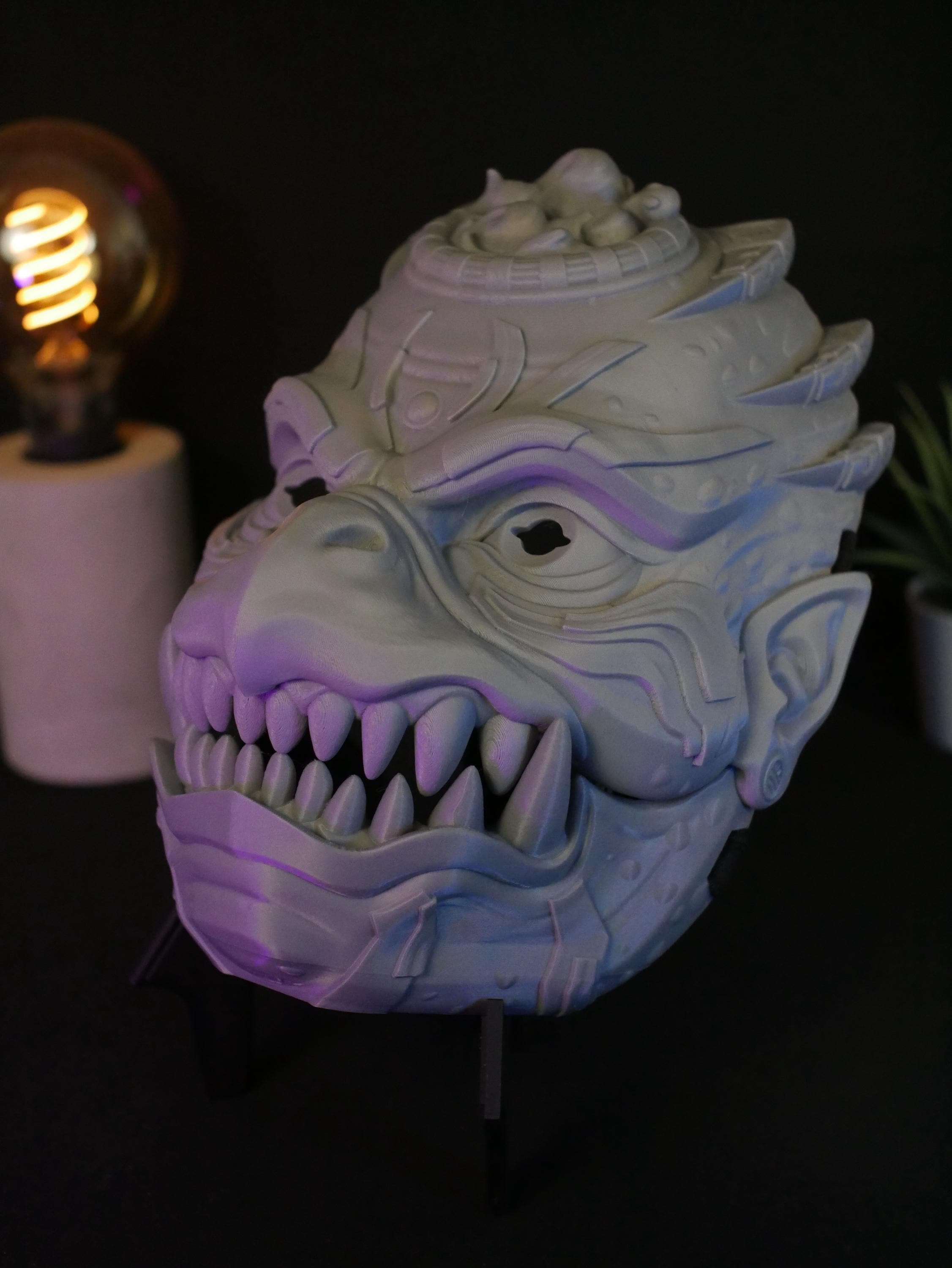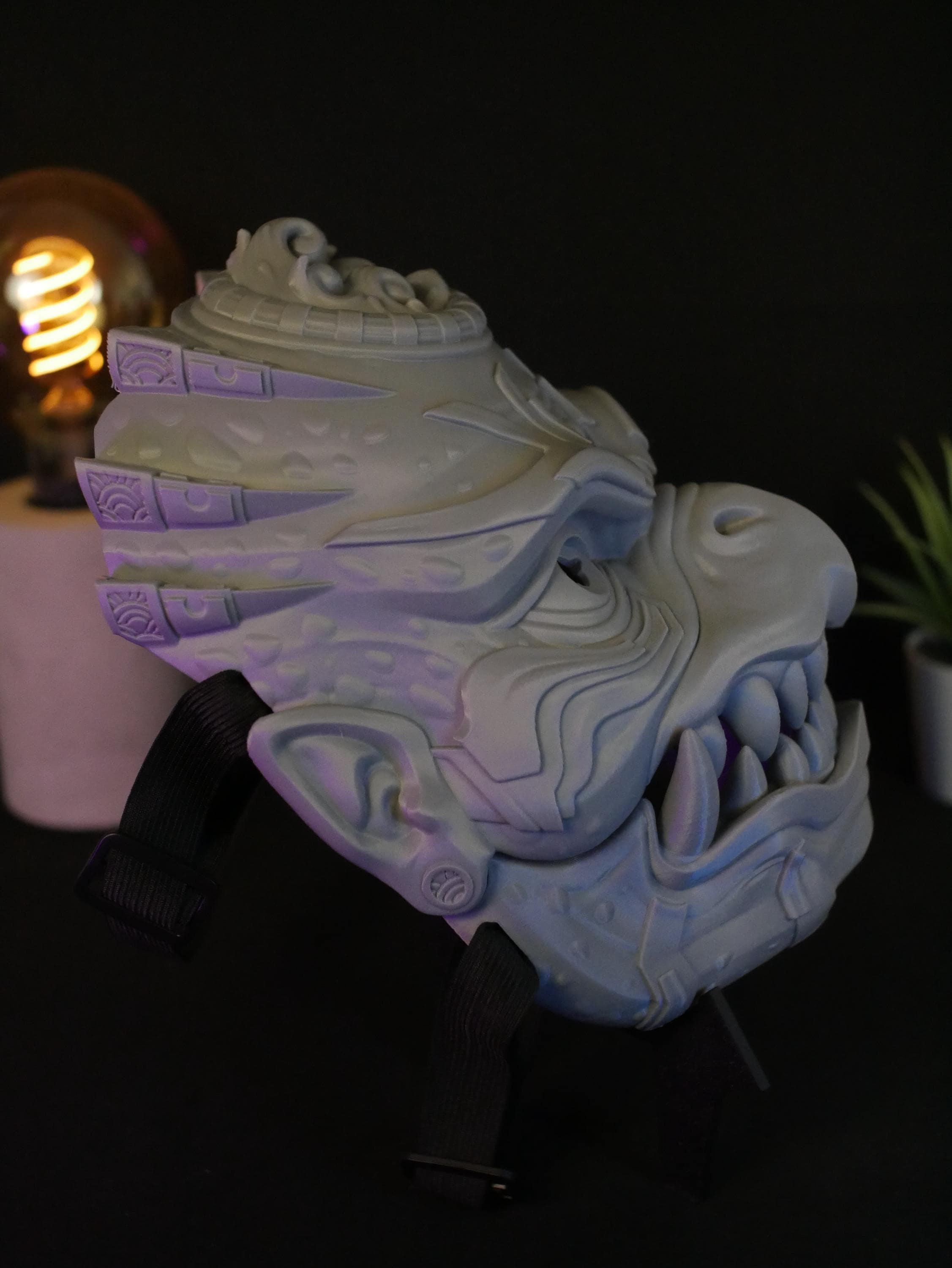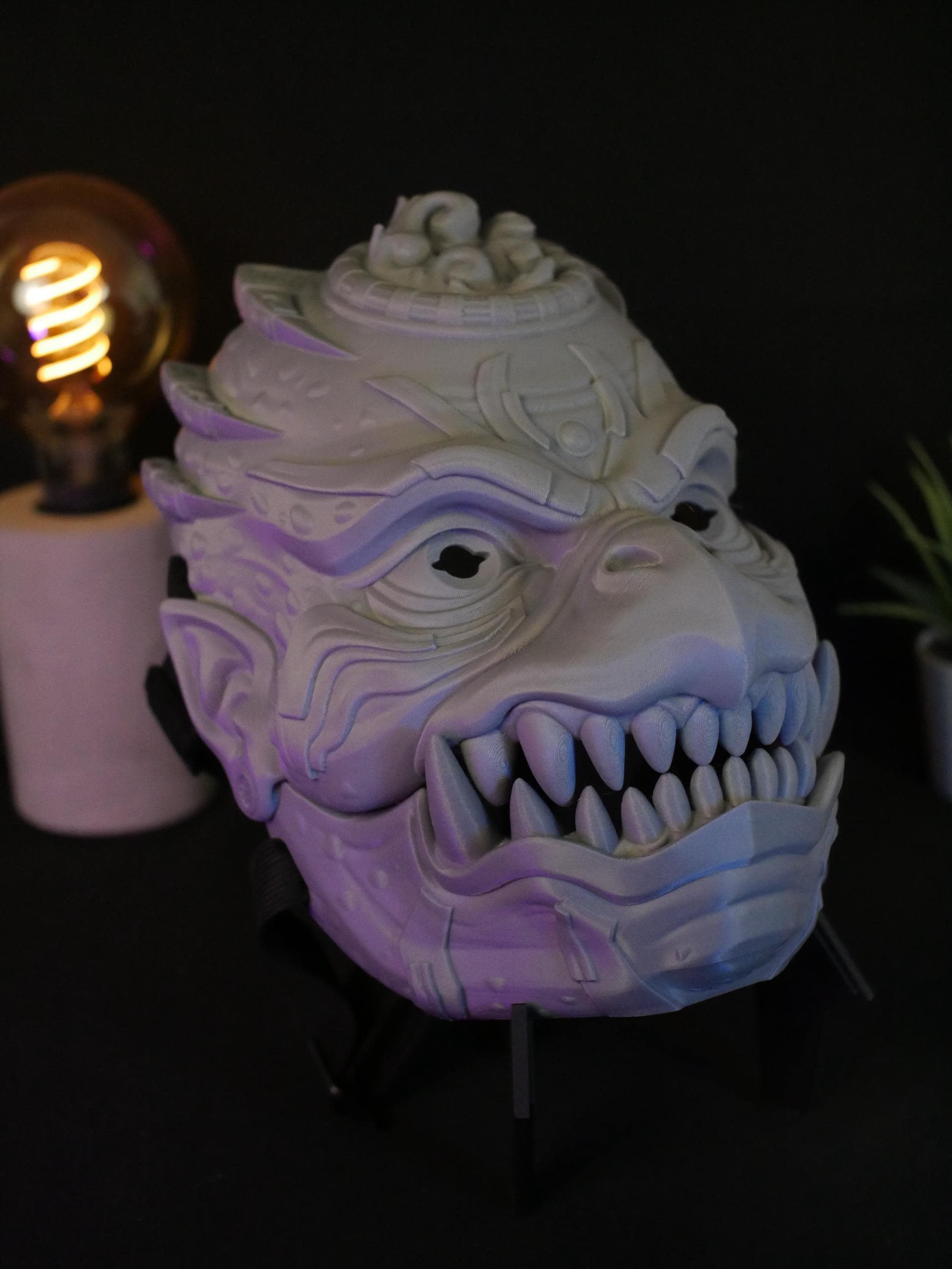 To get the absolute best experience and ensure the articulated jaw operates effortlessly and with maximum precision, we highly recommend adding custom foam padding to the inside of the mask. A snug, tailored fit against your face will give you maximum leverage, making opening and closing the mask's mouth feel completely natural, smooth, and strain-free.