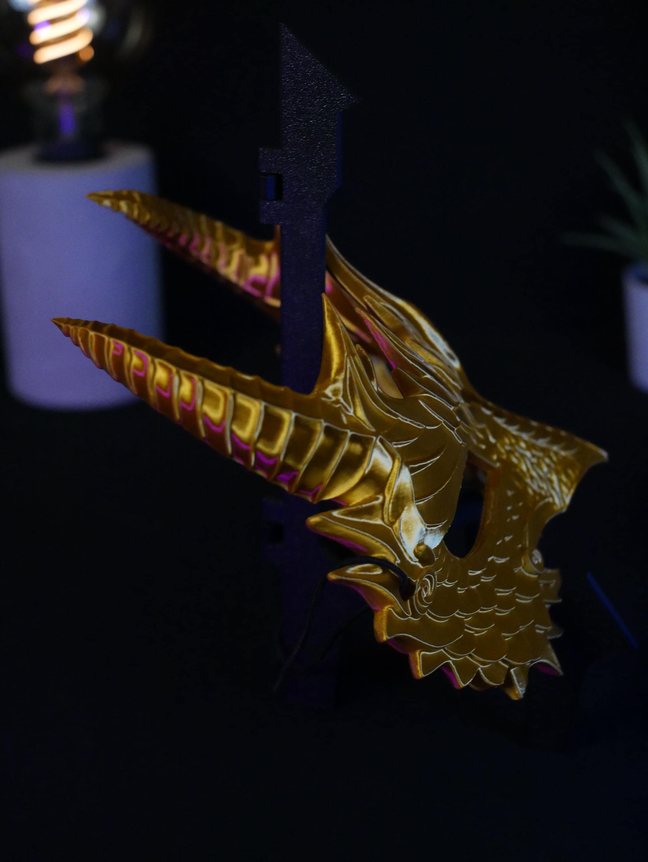 Intricate 3D Detailing: Features beautifully sculpted dragon scales, horns, and facial contours for a highly realistic fantasy look.