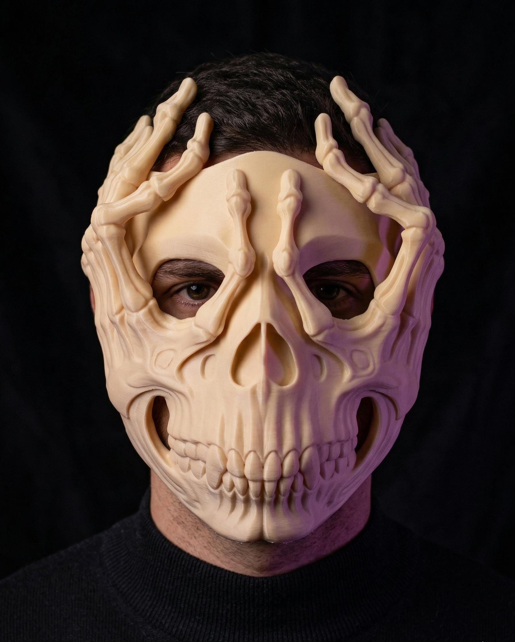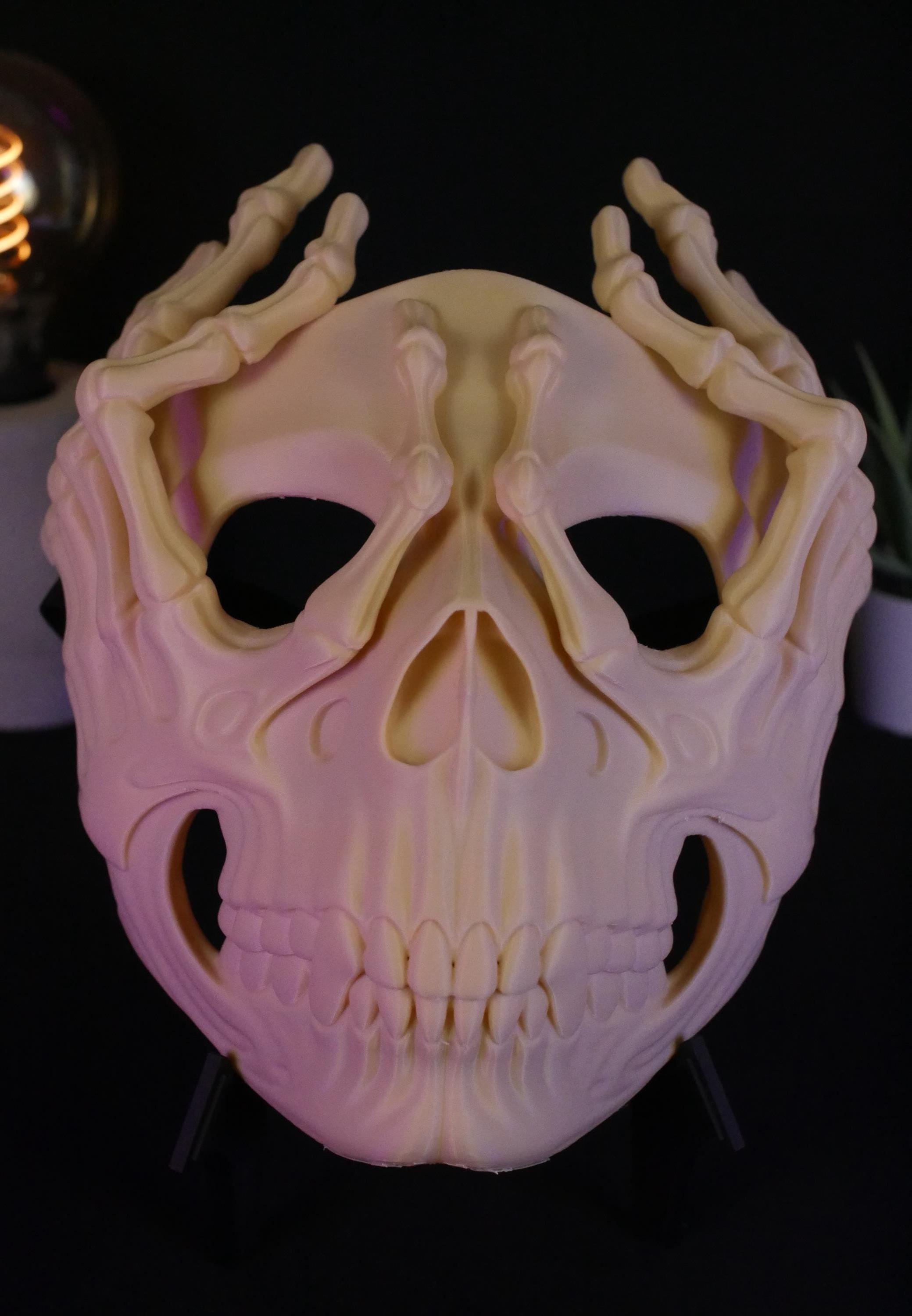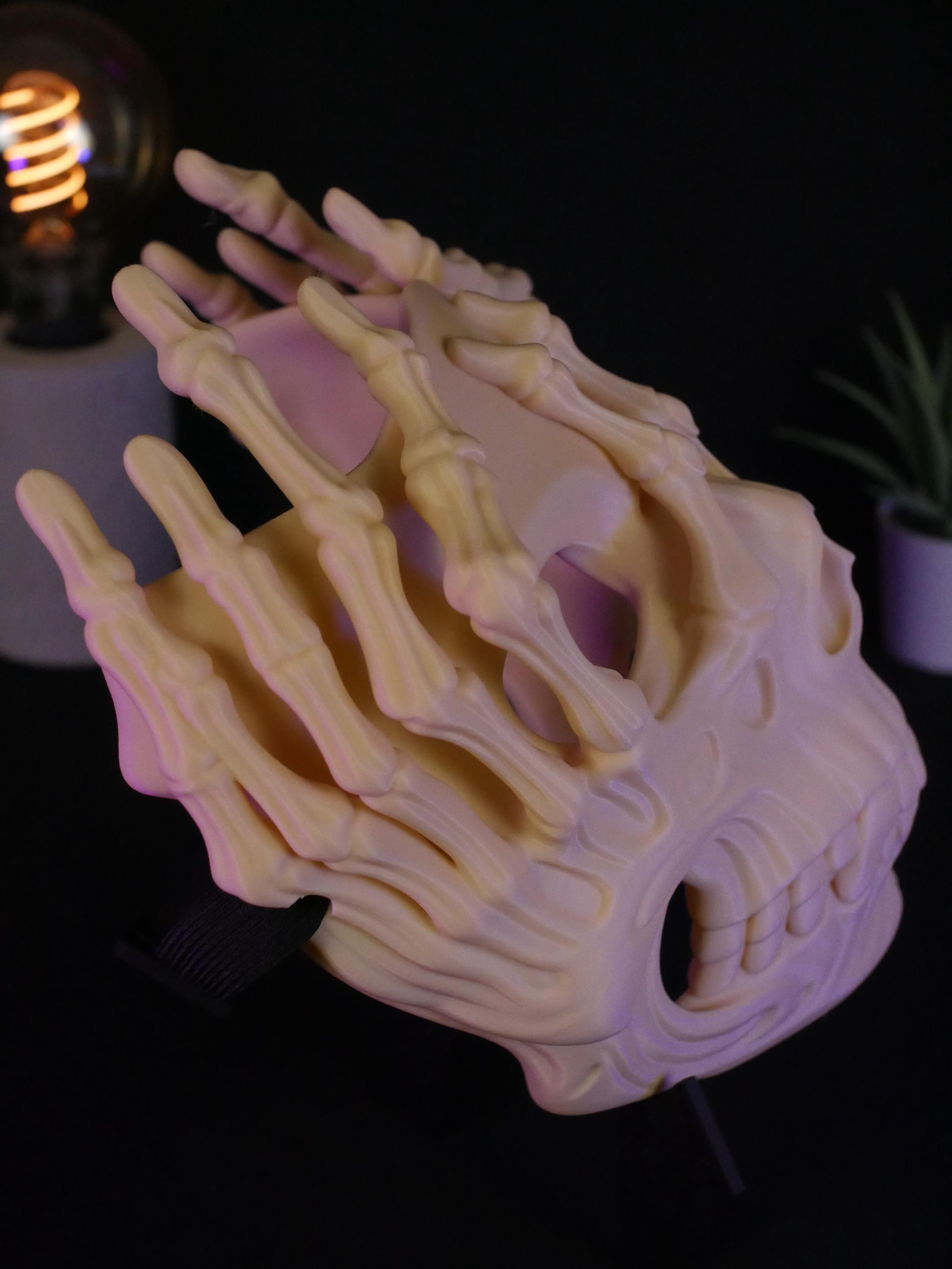 Embrace the dark aesthetic with this intricately designed Skeleton Hands Skull Mask. Crafted for those who appreciate the macabre, this unique piece features a haunting design where skeletal fingers grip the face, making it a standout accessory for any dark fantasy, gothic, or horror collection.