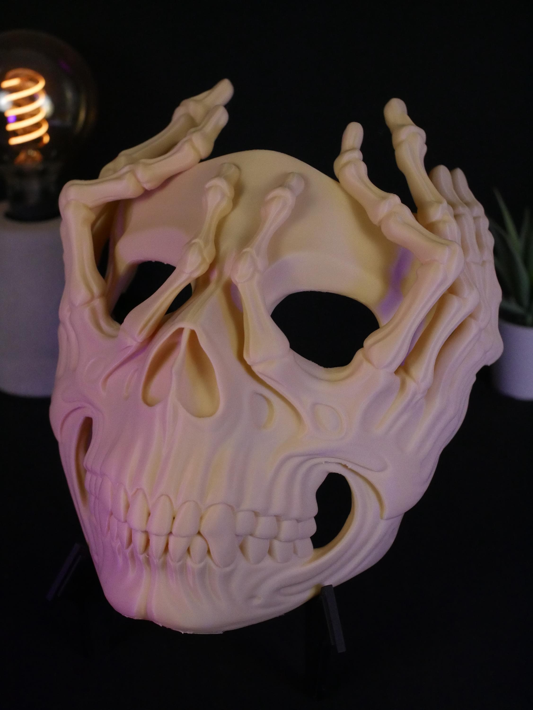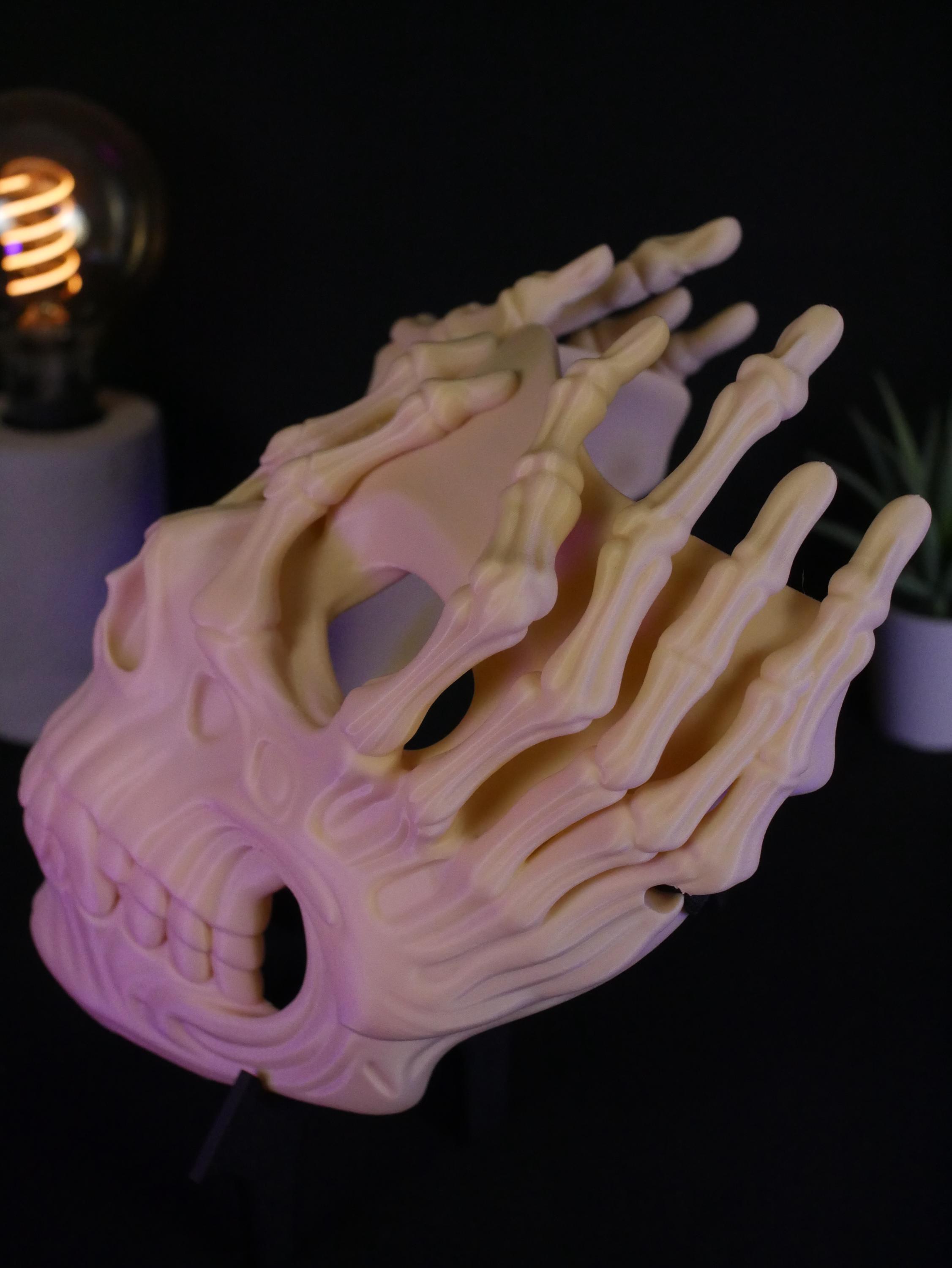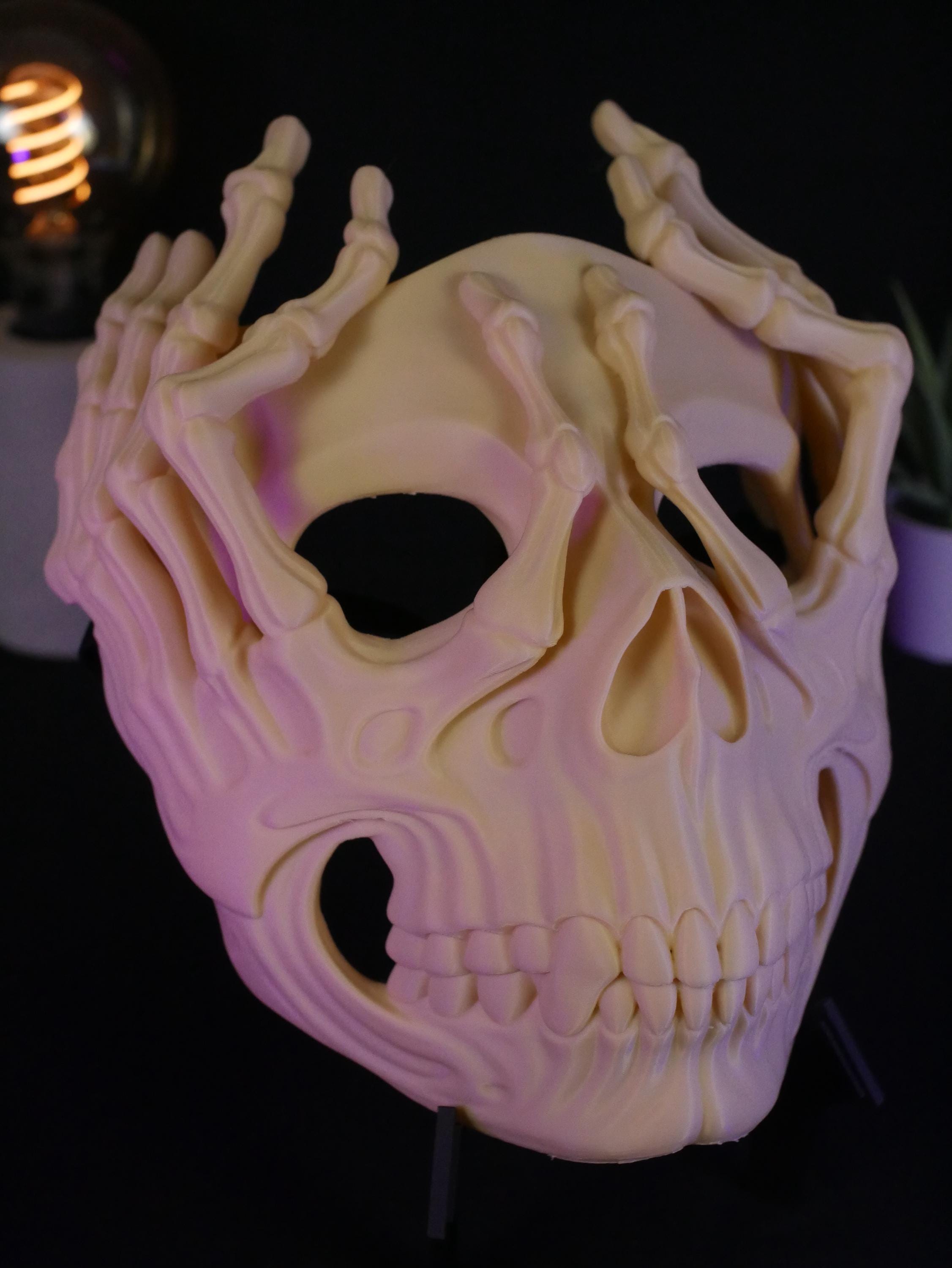 Embrace the dark aesthetic with this intricately designed Skeleton Hands Skull Mask. Crafted for those who appreciate the macabre, this unique piece features a haunting design where skeletal fingers grip the face, making it a standout accessory for any dark fantasy, gothic, or horror collection.