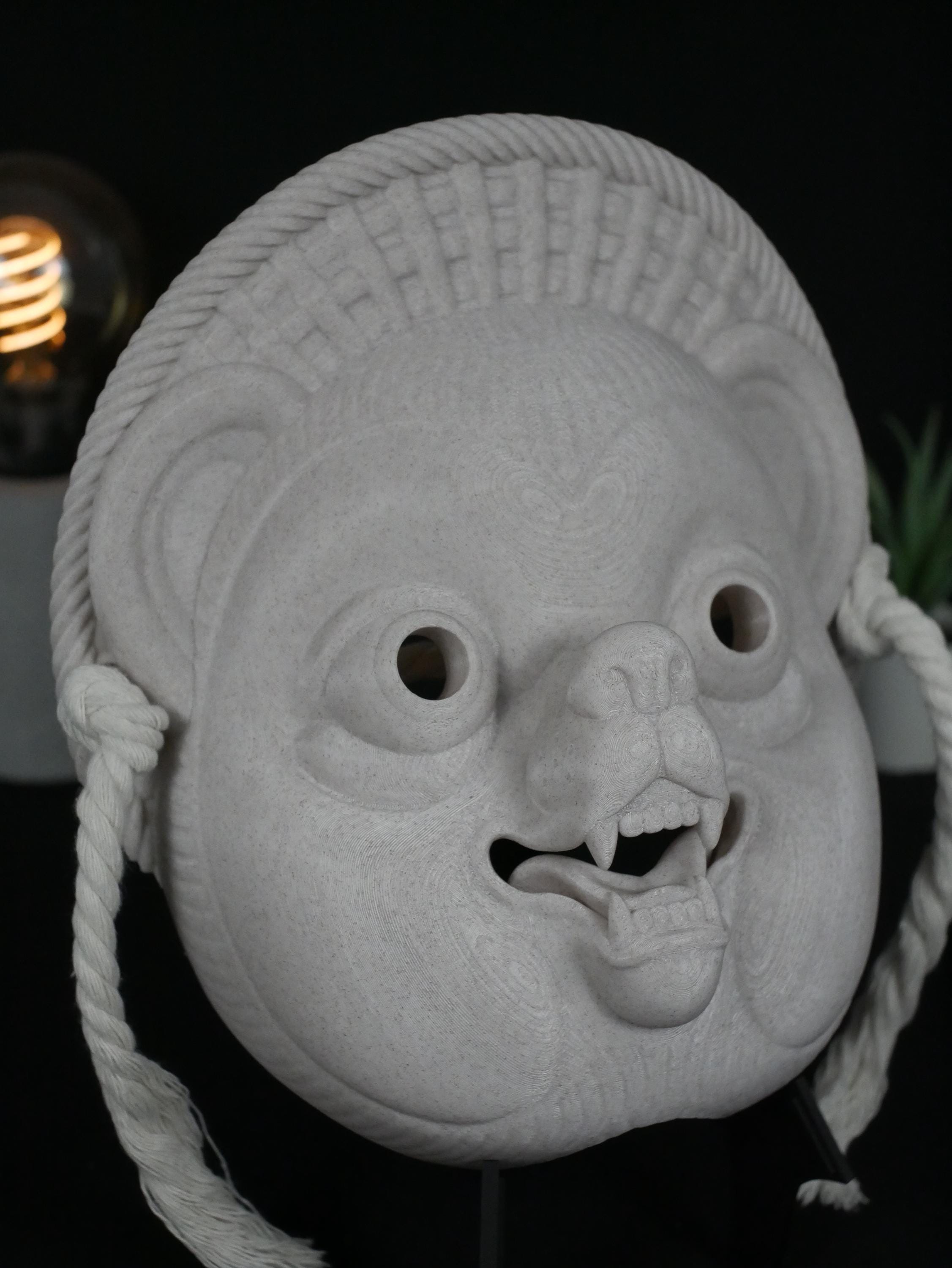 Authentic Details: Includes the characteristic rope accent for a 100% authentic Japanese festival mask look.