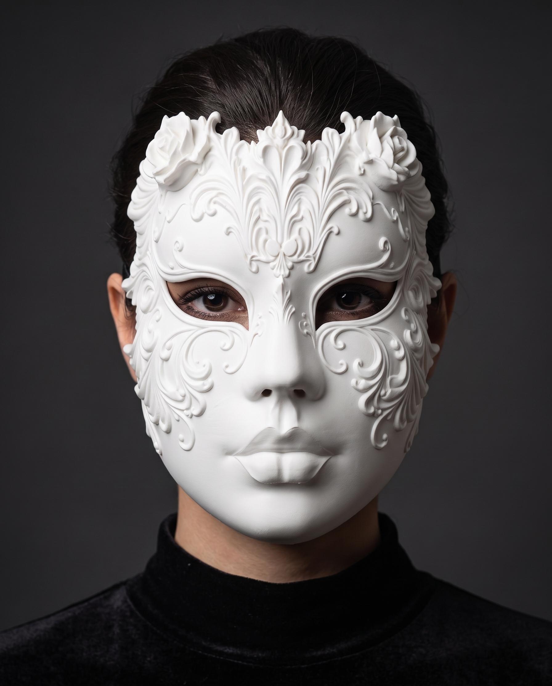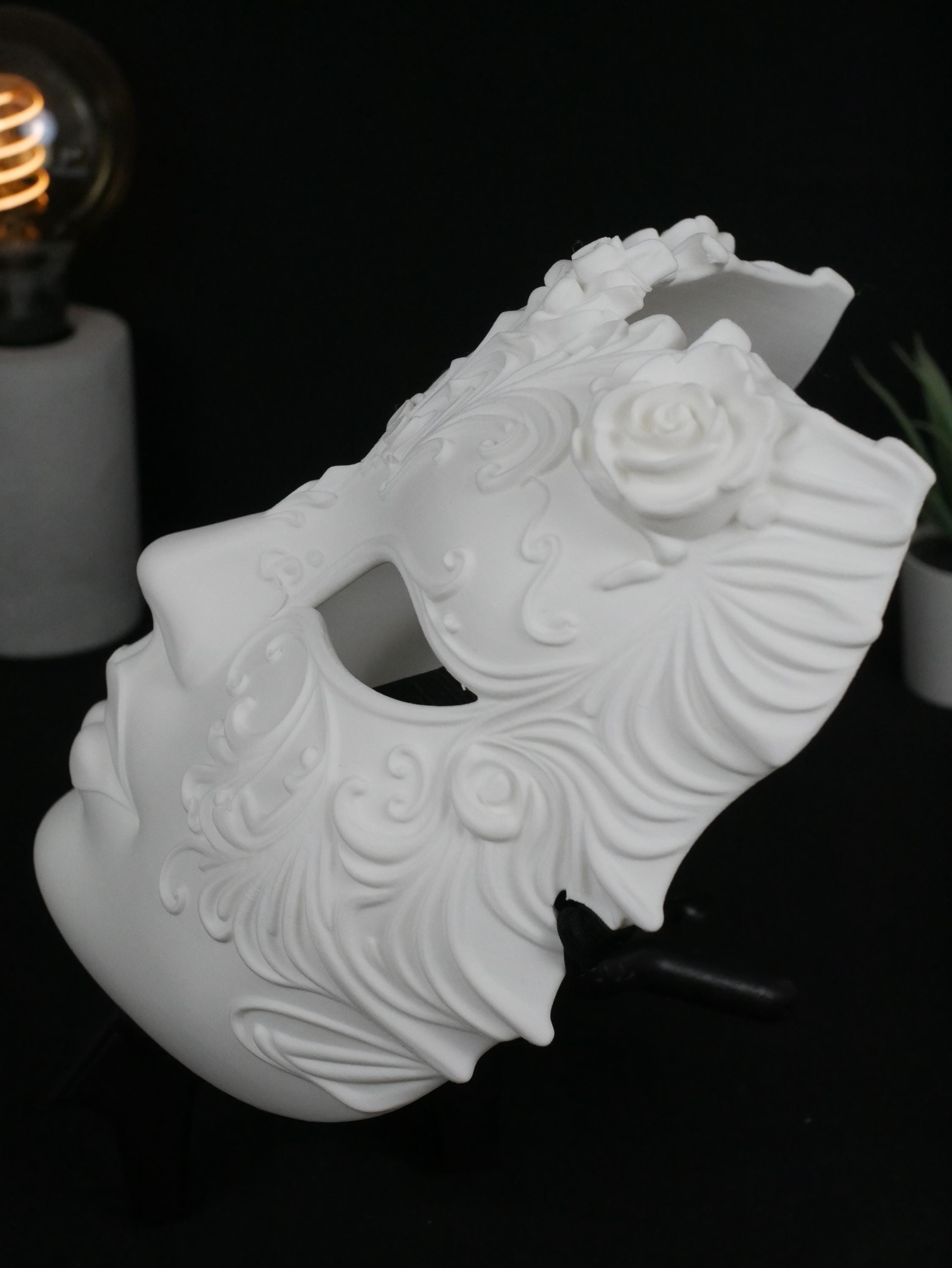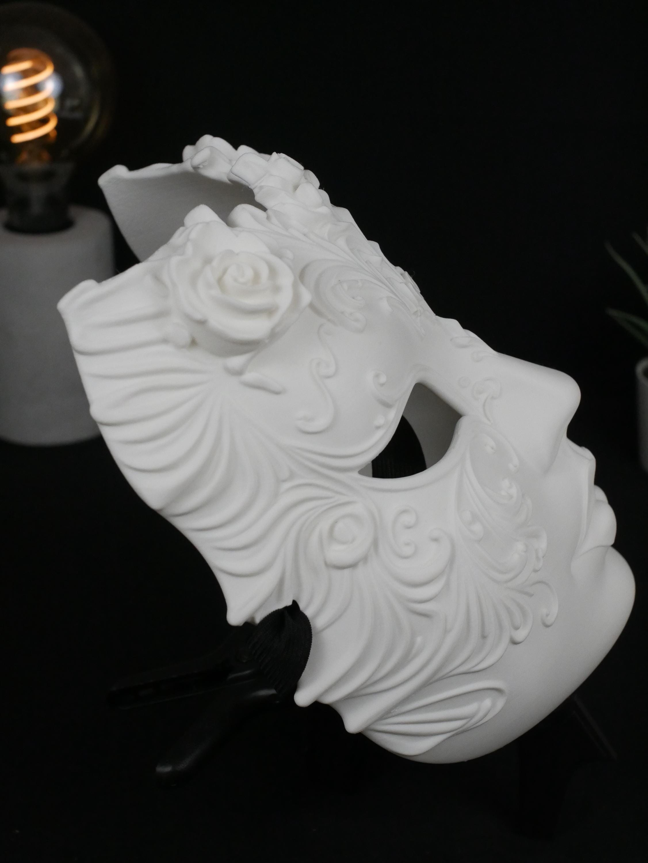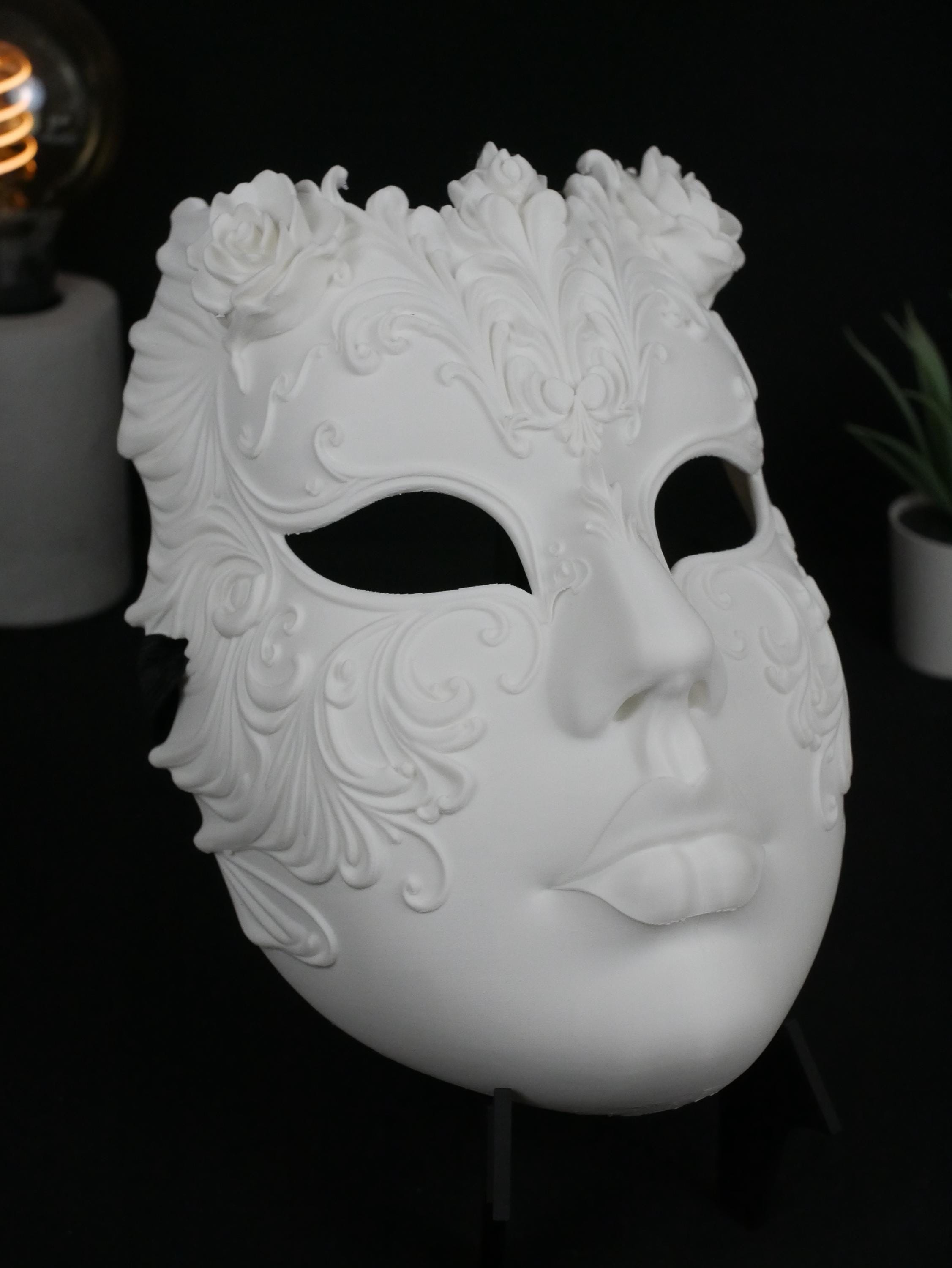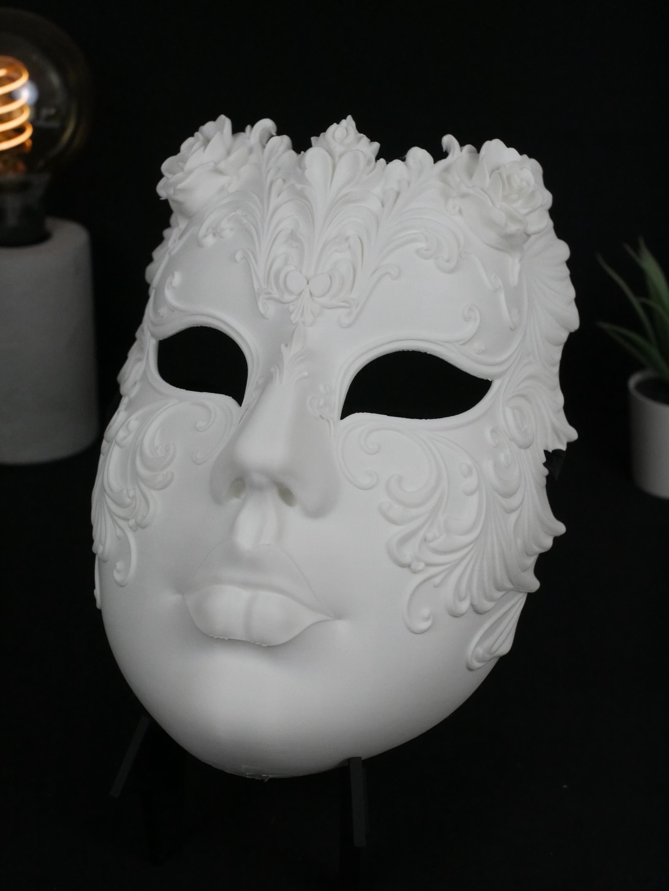 Elevate your masquerade or cosplay ensemble with this exquisitely detailed Venetian-style full-face mask. Crafted with meticulous attention to detail and featuring intricate, baroque-inspired floral motifs, this piece is designed to be a showstopper at any high-end event.
