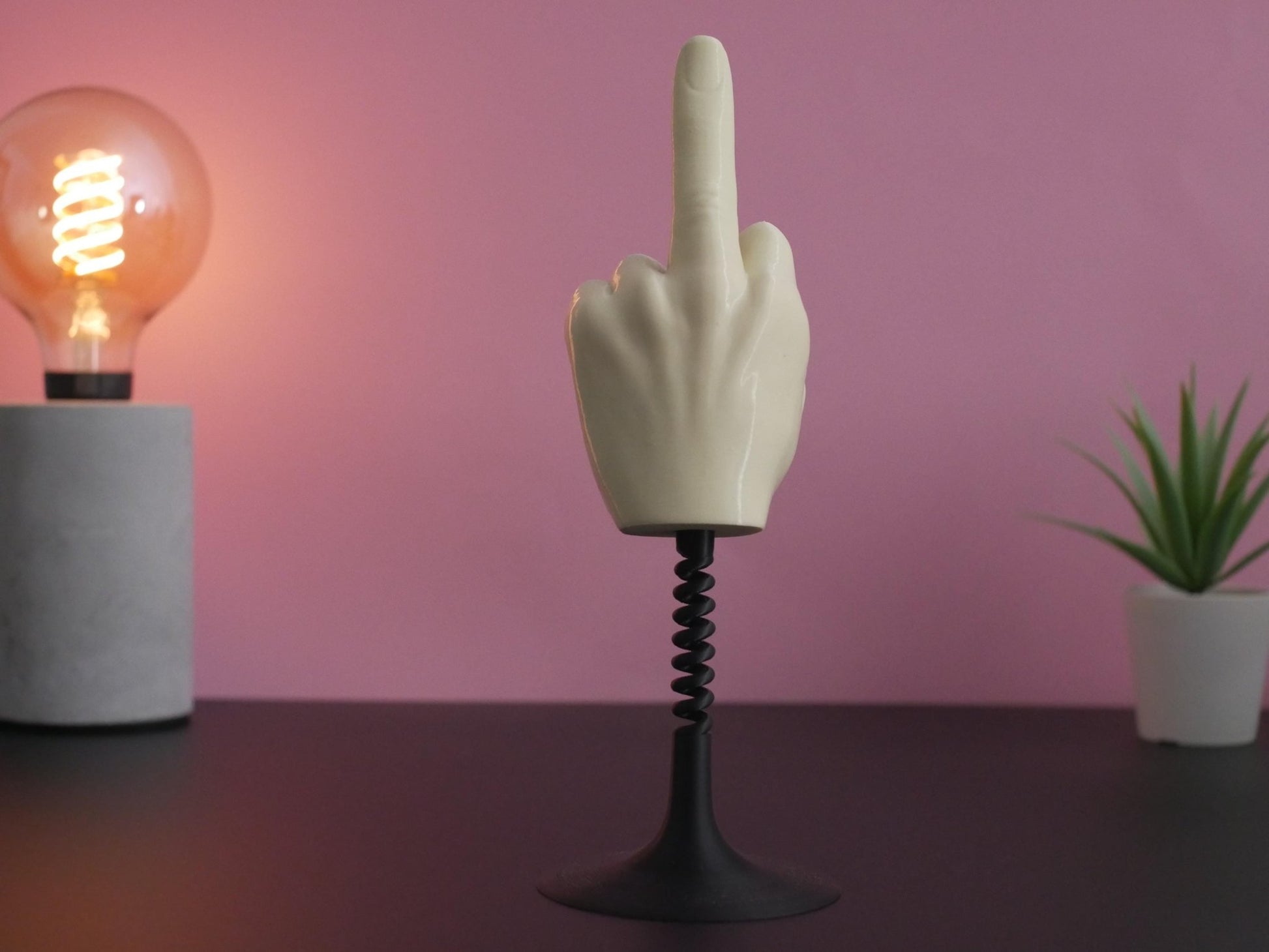 Figura de dedo medio con gesto de mano. Decoración divertida perfecta como regalo para oficinas y espacios modernos.