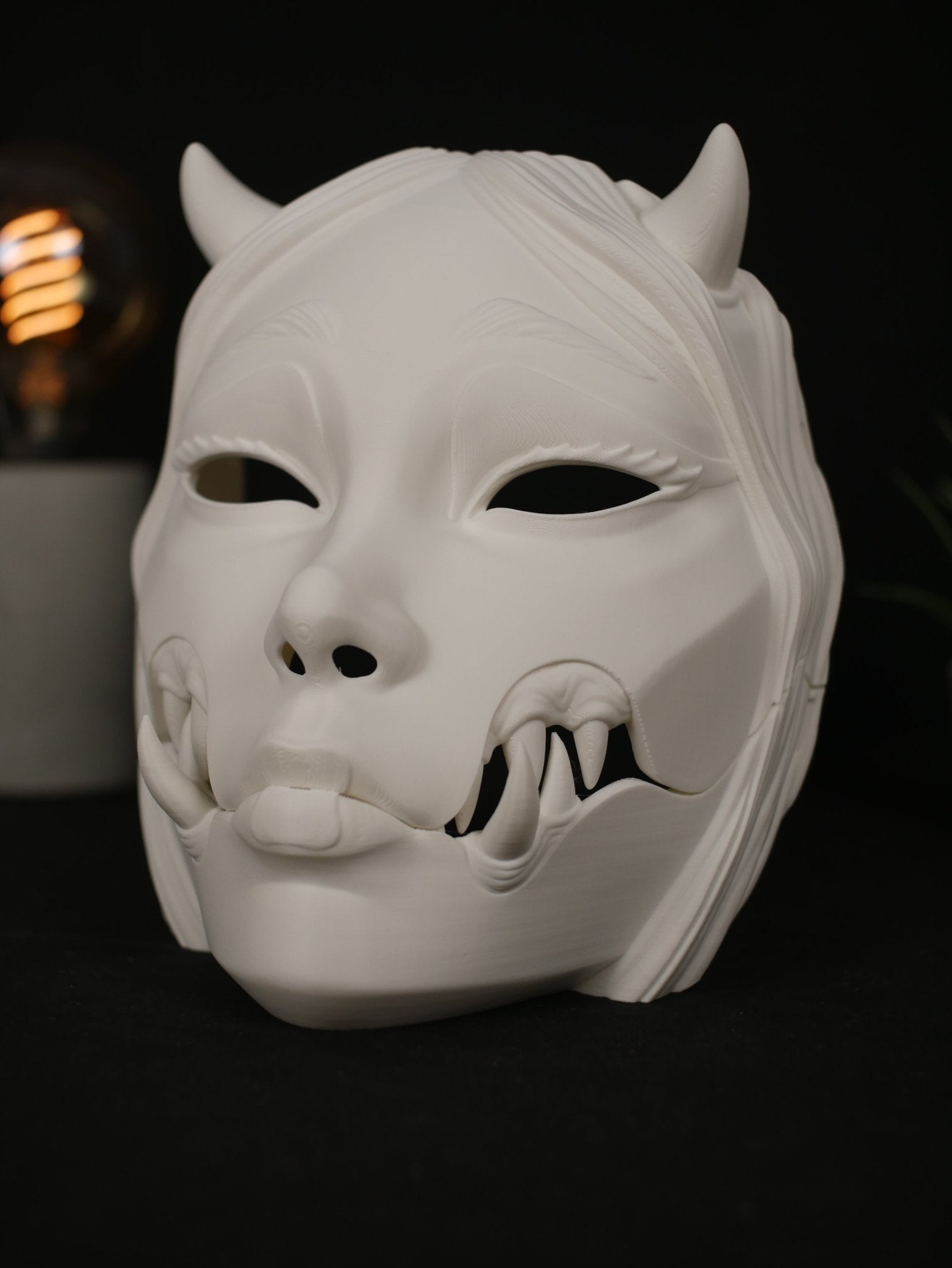 Lleva tu cosplay al siguiente nivel con esta impresionante máscara de Kuchisake-onna (La mujer de la boca cortada). Este diseño exclusivo fusiona la terrorífica leyenda urbana japonesa con la estética de un Demonio Oni, creando una pieza única para coleccionistas y cosplayers.