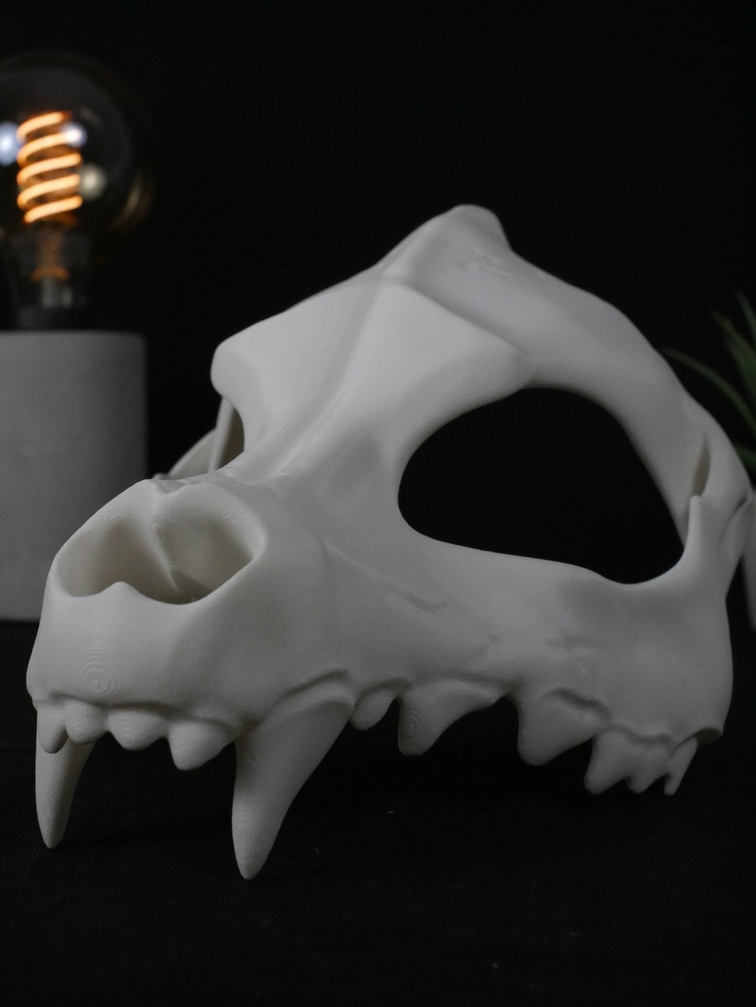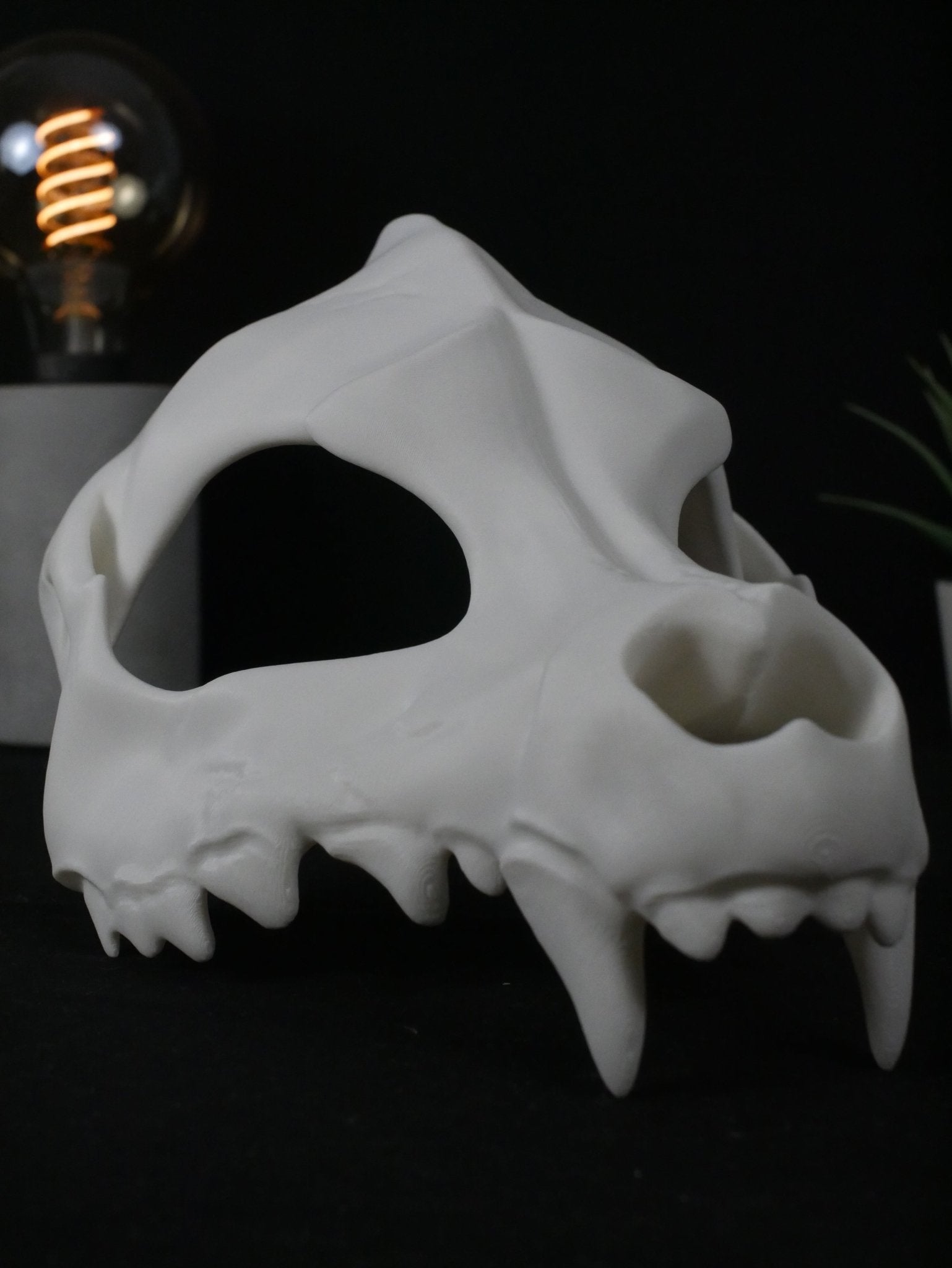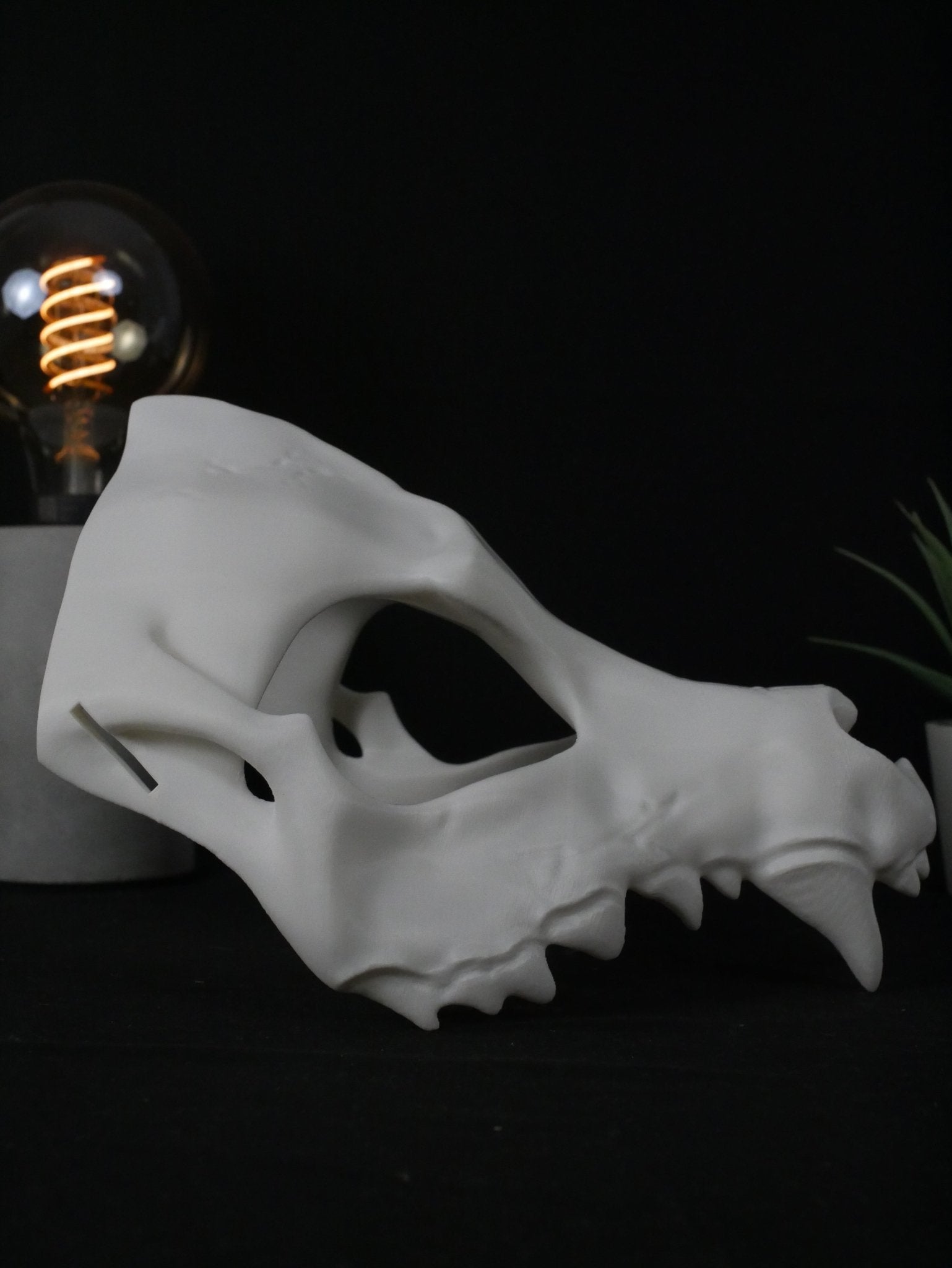 Ya sea para completar tu fursuit, caracterizarte para un rol en vivo (LARP) o destacar en Halloween, esta máscara de cráneo de lobo es el accesorio definitivo. Diseñada con un realismo impactante y una estética de fantasía, cubre la parte superior del rostro permitiéndote hablar, respirar y beber con total comodidad durante horas.