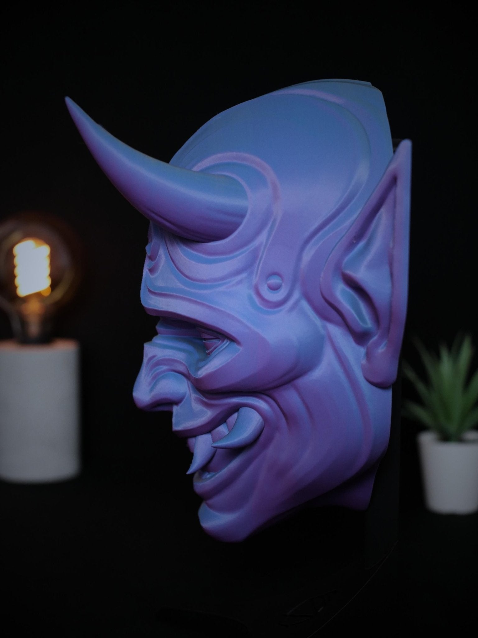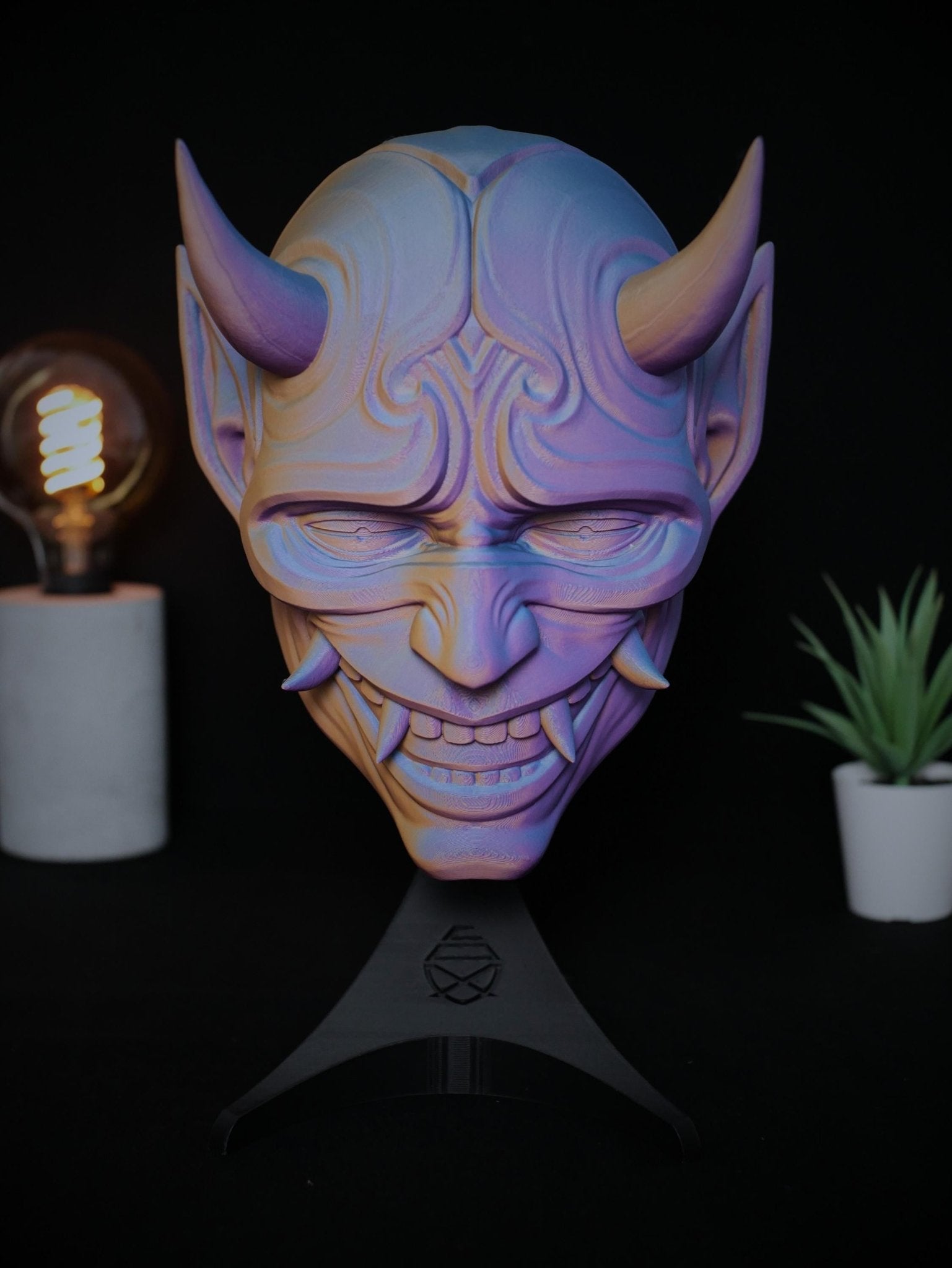 Soporte para auriculares ONI: organizador de oficina, soporte para auriculares de estudio, máscara japonesa ONI, incluye base (soporte de pared opcional) Regalo perfecto.